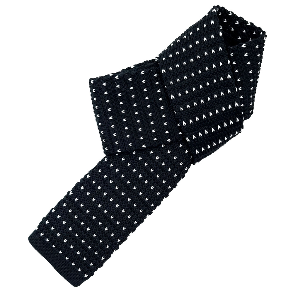 Μαύρη πολύ στενή πλεκτή γραβάτα με λευκές πιτσιλιές