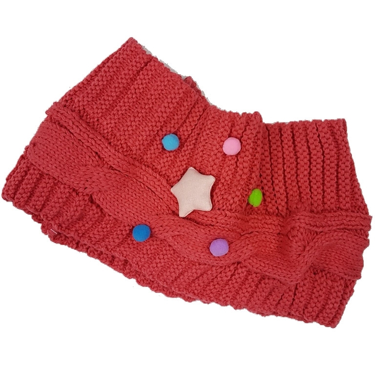 Μονόχρωμος φουξ πλεκτός παιδικός λαιμός με pom pom και αστεράκι