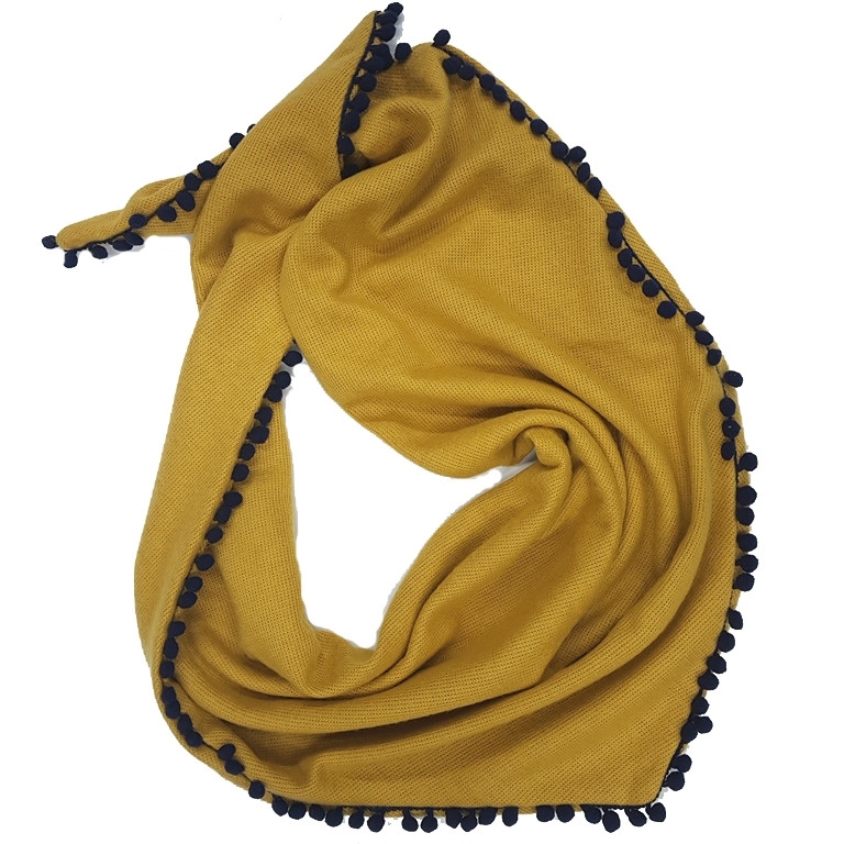 Μουσταρδί τρίγωνο παιδικό φουλάρι - κασκόλ με μικρά pom-pom