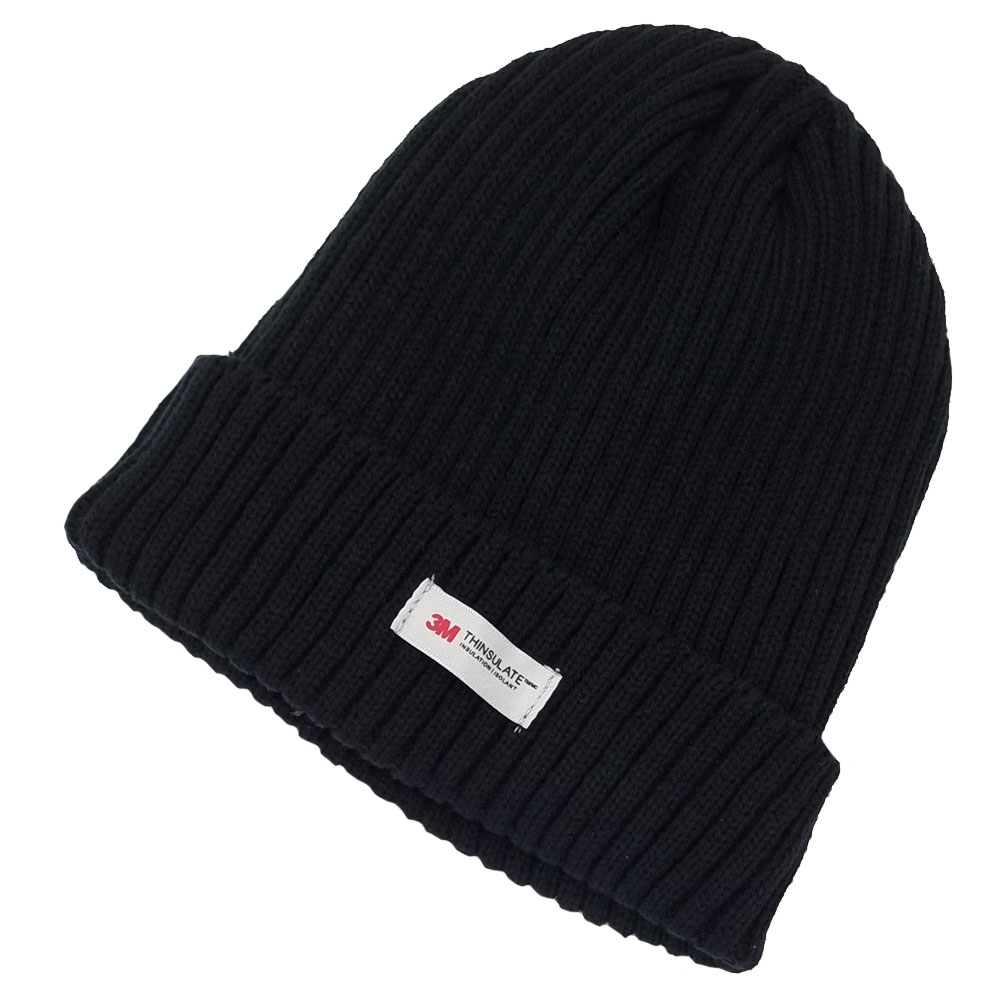 Ριγέ πλεκτός μονόχρωμος μαύρος unisex σκούφος με thinsulate επένδυση