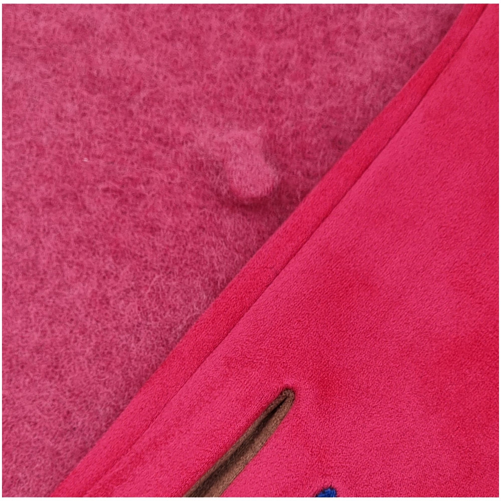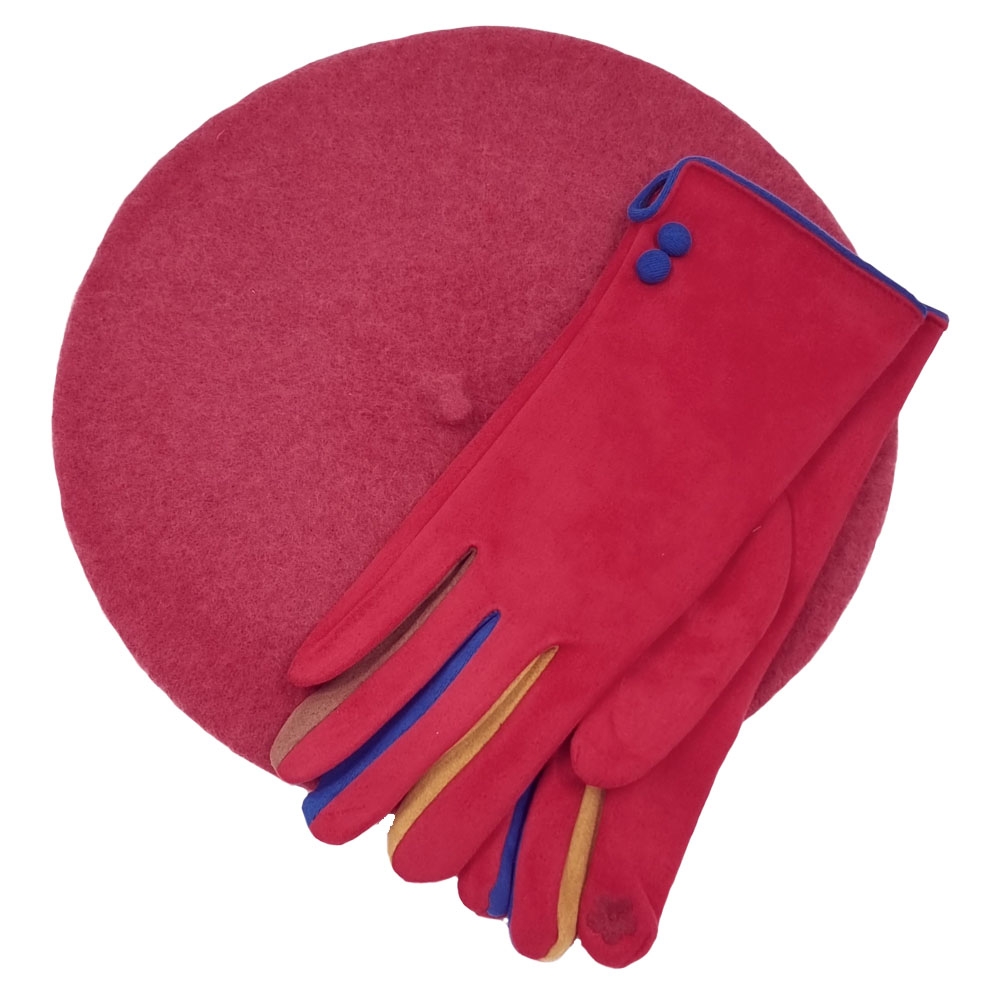 Rose pink μάλλινος μπερές και ελαστικά γάντια από μαλακό ύφασμα με χρωματιστές λεπτομέρειες και λούτρινη επένδυση