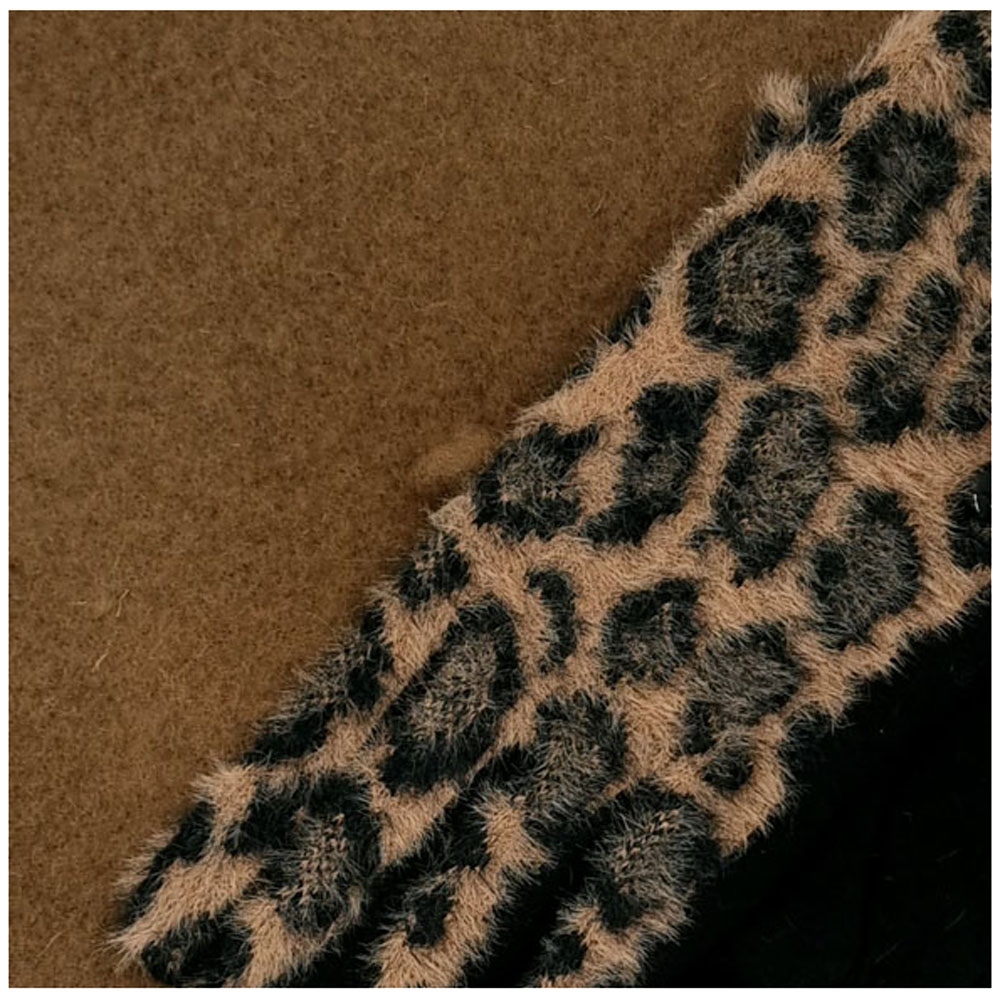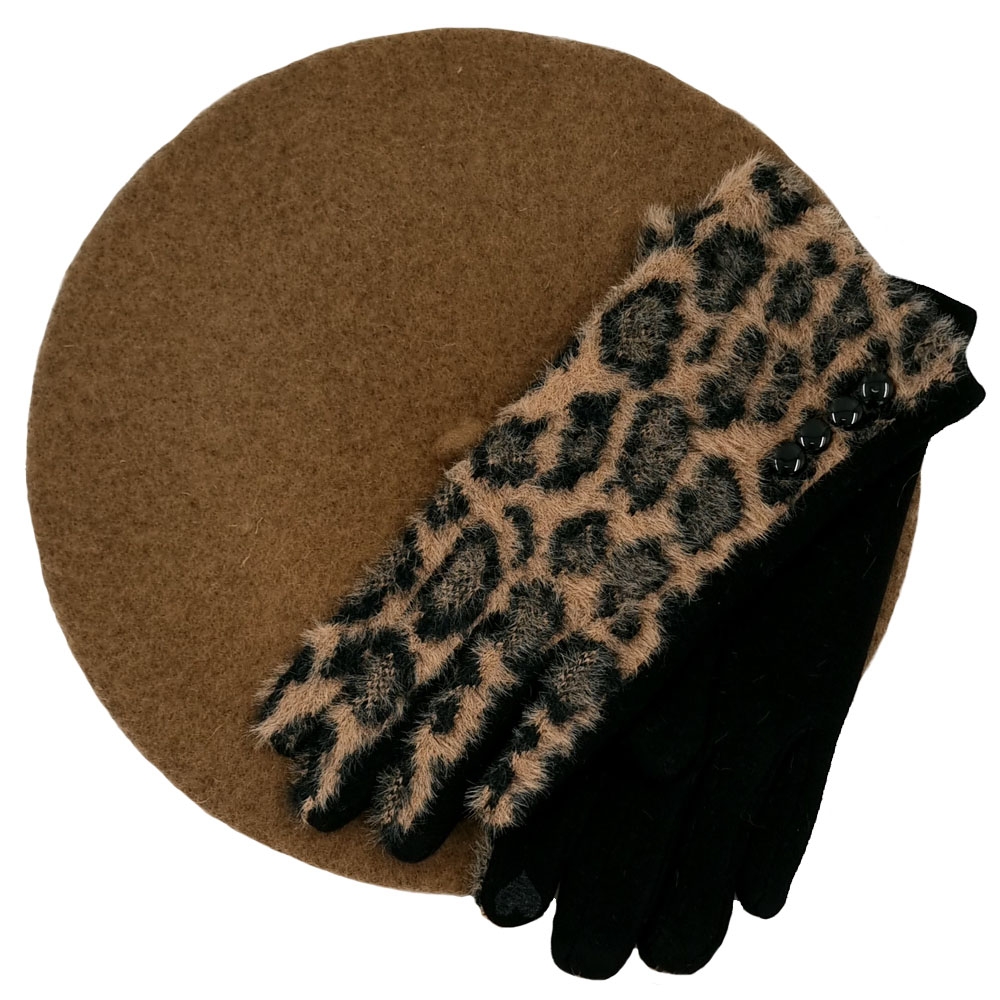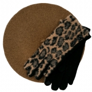 Σετ από mocca μάλλινο μπερέ και aninal print χνουδωτά γάντια