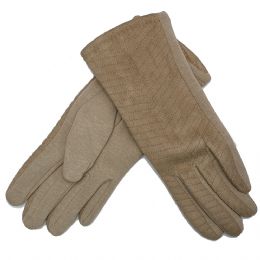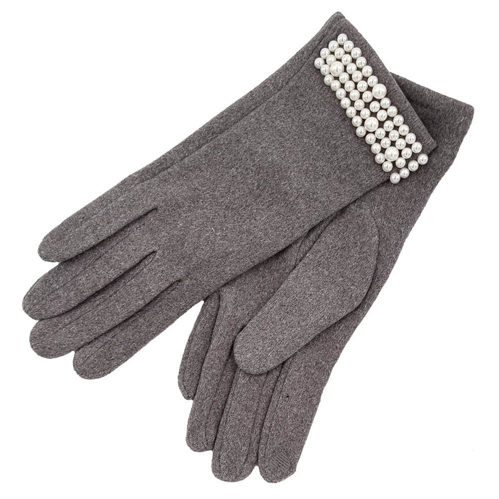 Γκρι ελαστικά υφασμάτινα γάντια με πέρλες και λούτρινη επένδυση