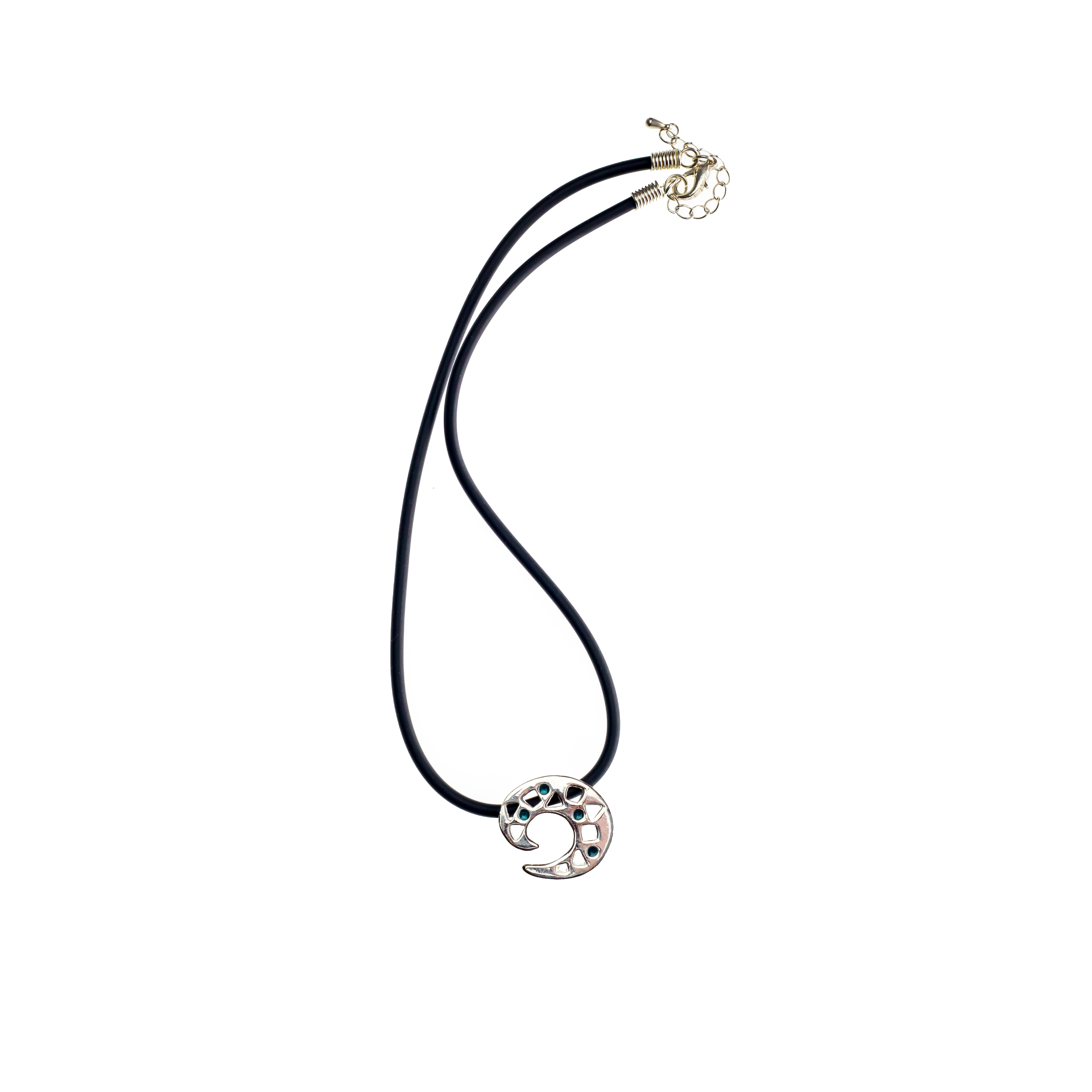 Κοντό κολιέ με καουτσούκ και ασημί charm με μπλε strass Moon