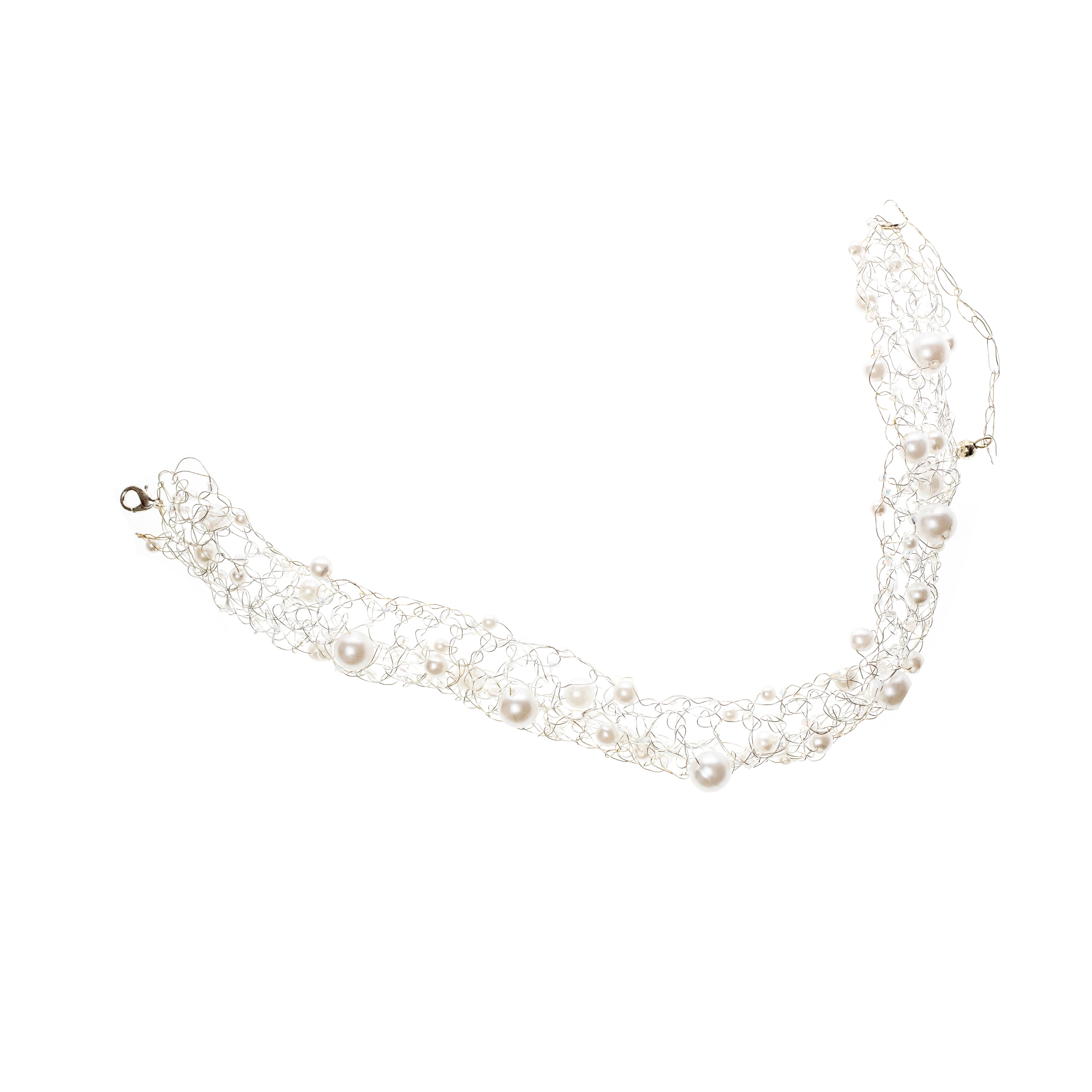 Συρμάτινο ασημί τσόκερ με λευκές πέρλες