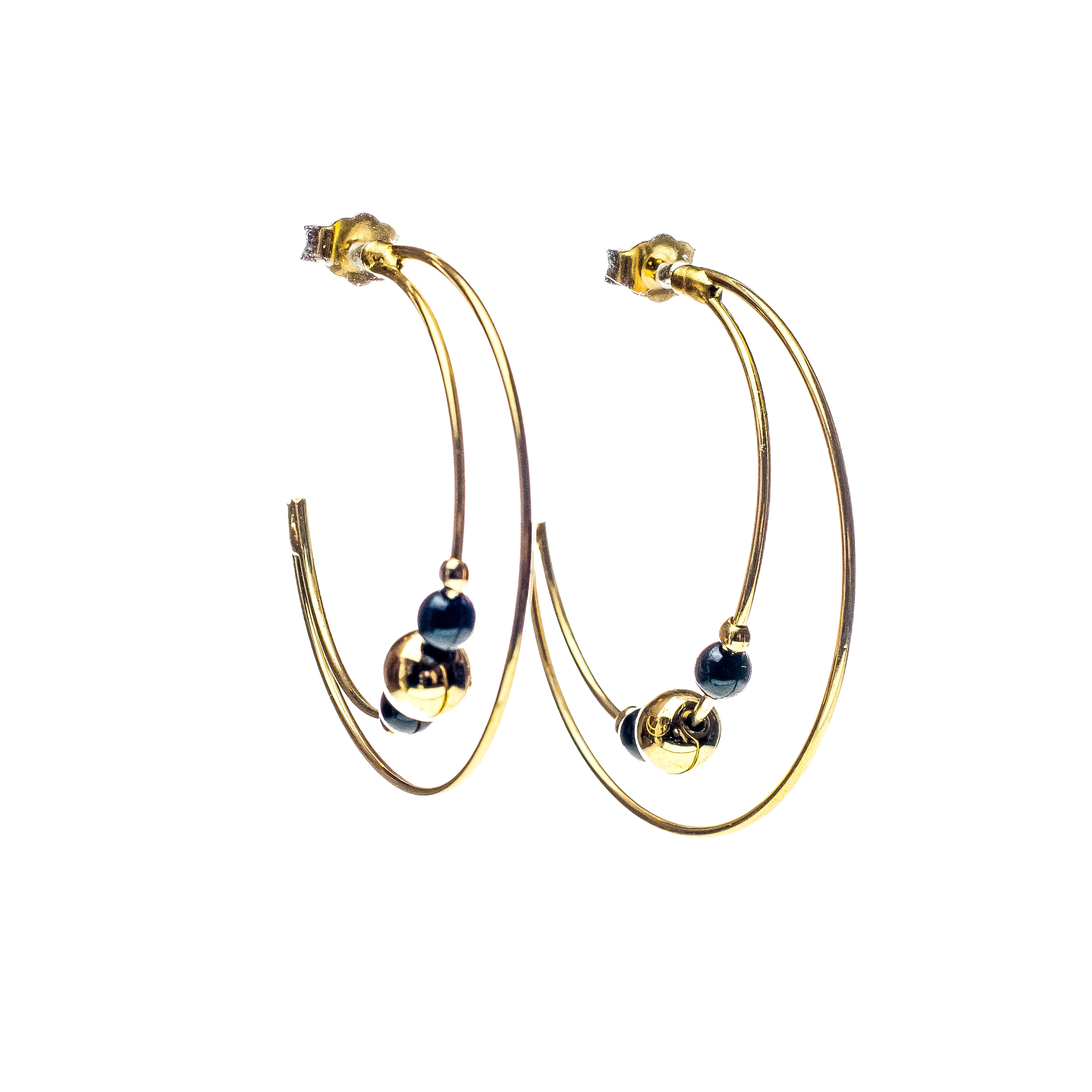 Διπλοί χρυσοί κρίκοι με μαύρες και χρυσές πέτρες