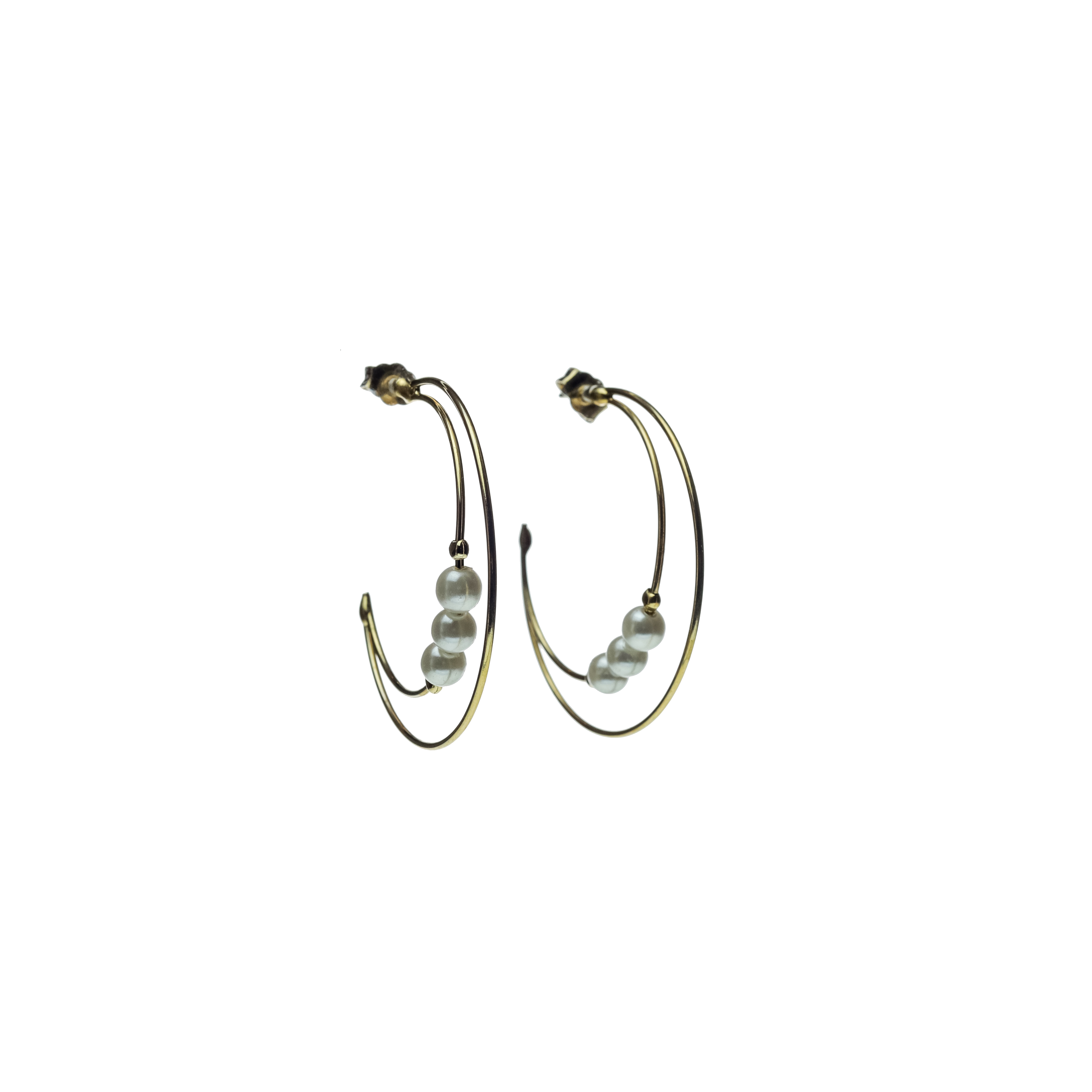 Διπλοί χρυσοί κρίκοι με λευκές πέρλες