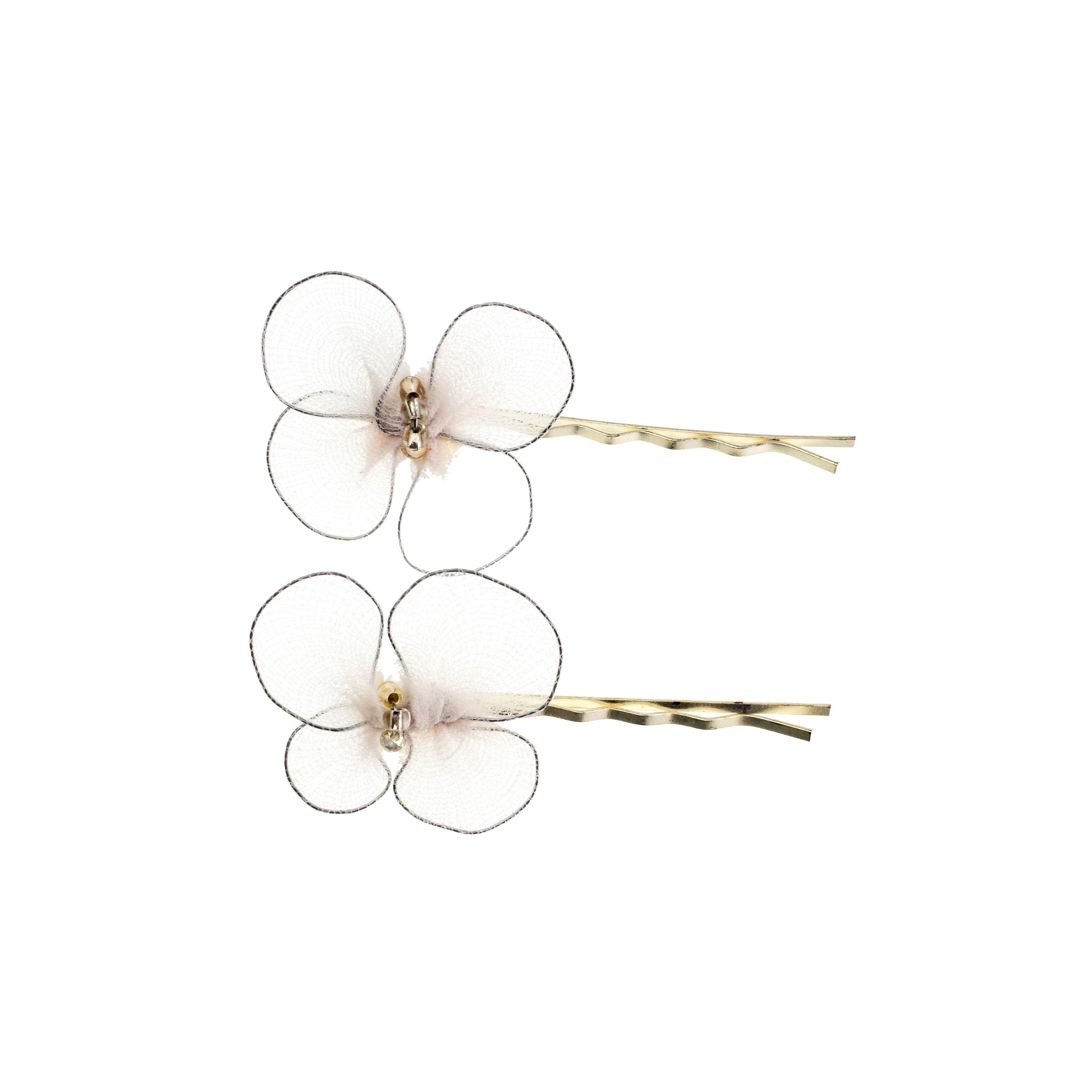 Σετ από δύο ασημί τσιμπιδάκια μαλλιών με λευκές υφασμάτινες πεταλούδες