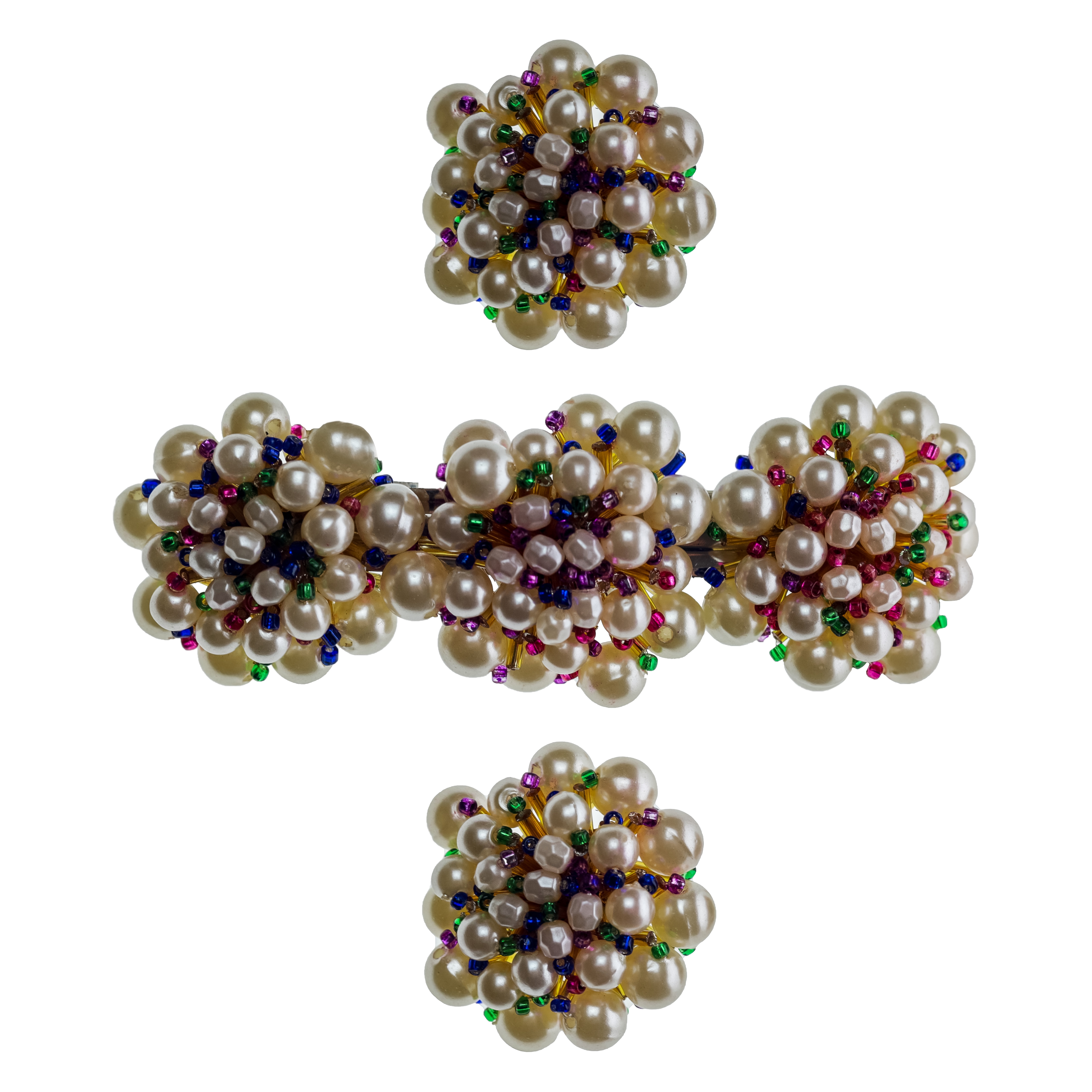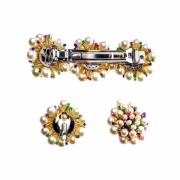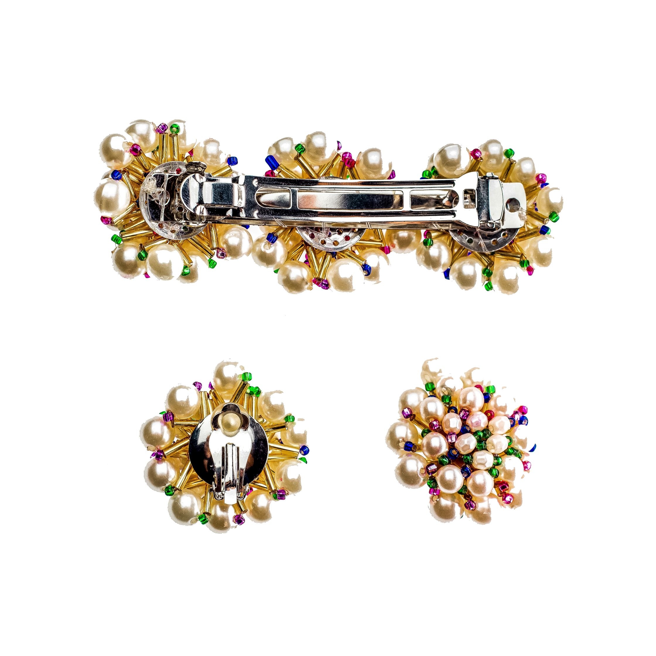 Σετ μπαρέτα και σκουλαρίκια κλιπ με πέρλες και χρωματιστές χάντρες