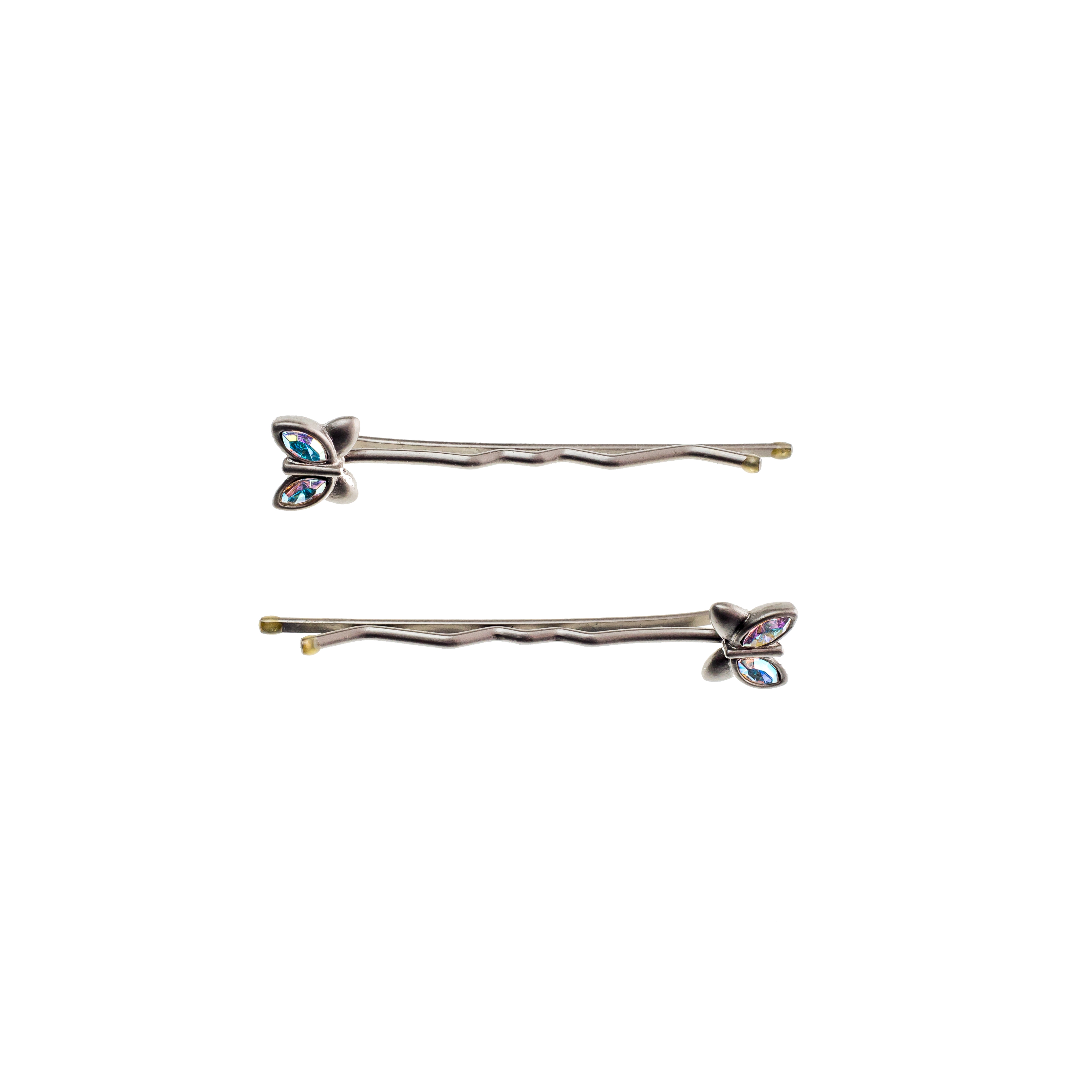 Σετ από δύο τσιμπιδάκια μαλλιών με πεταλούδες με λευκά strass