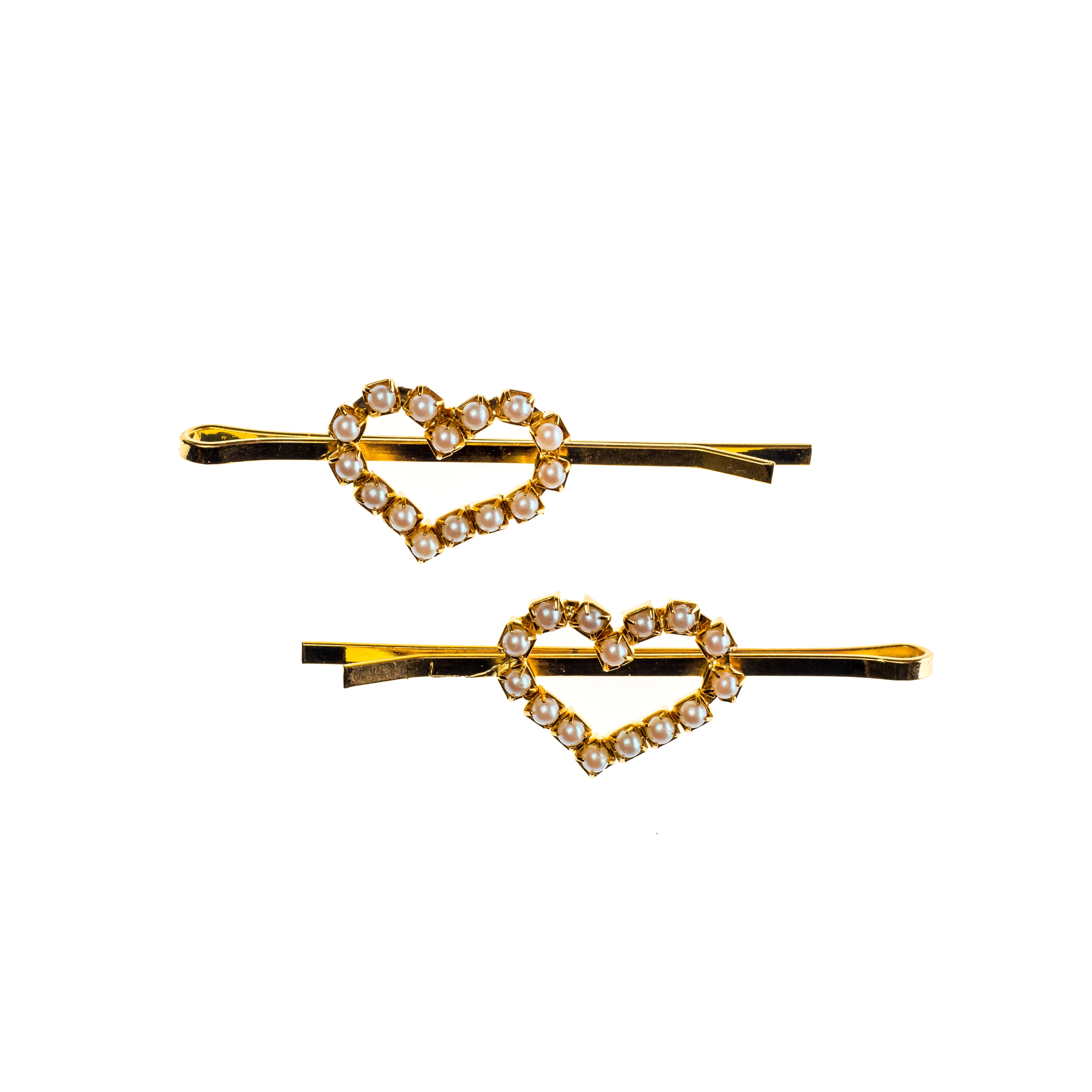 Σετ από δύο χρυσά τσιμπιδάκια μαλλιών καρδιές με πέρλες