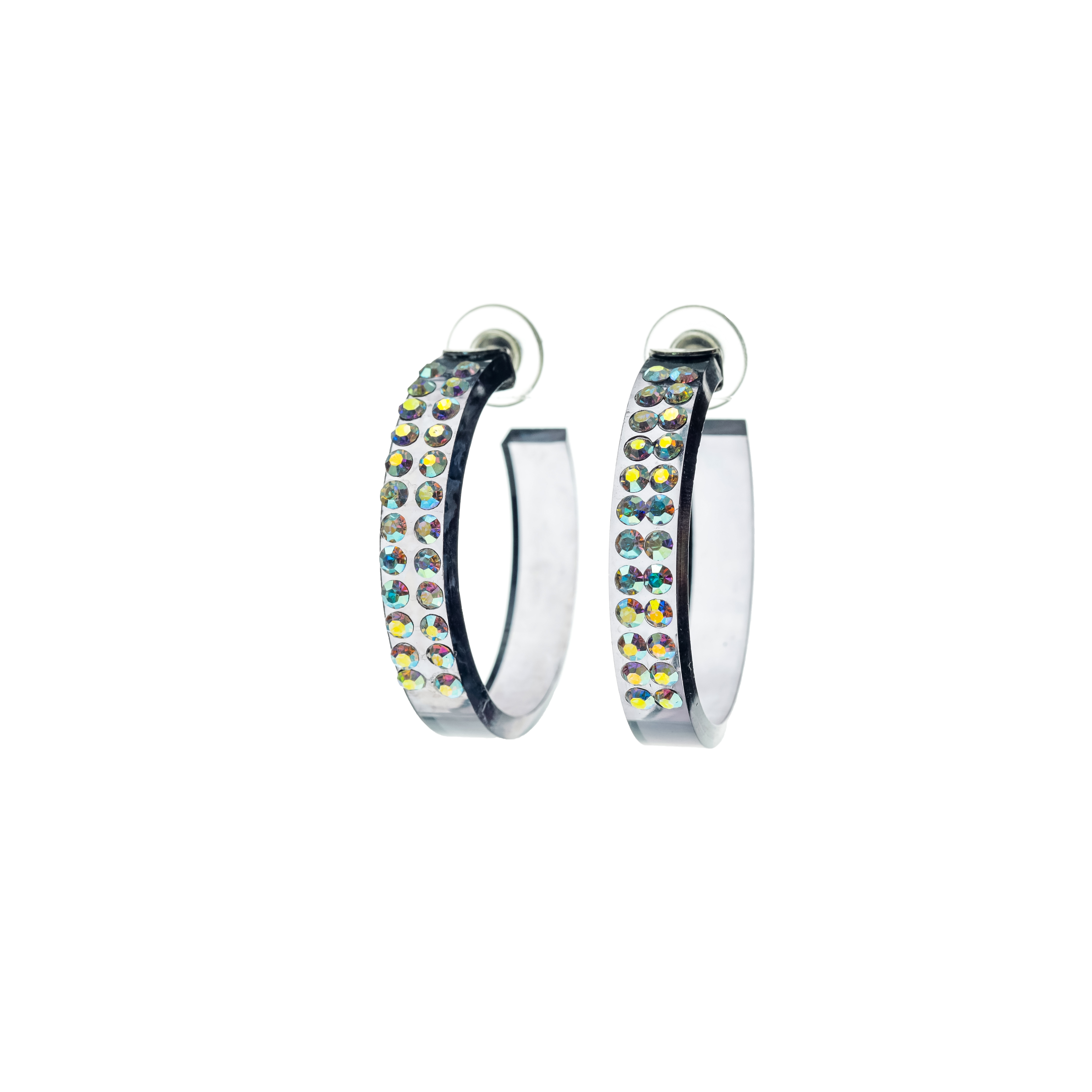 Γκρι plexiglass κρίκοι με δύο σειρές λευκά strass
