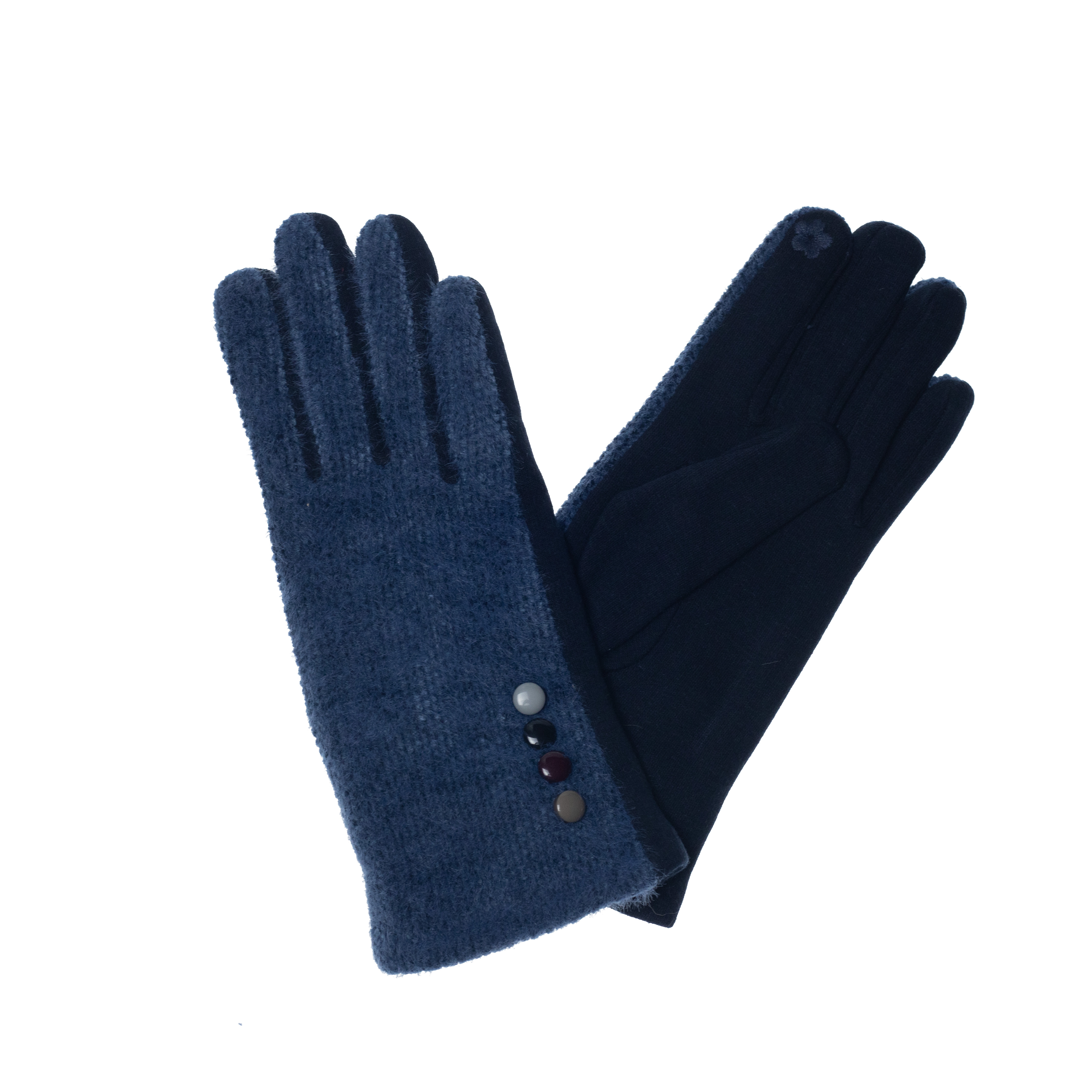 Ελαστικά μπουκλέ μπλε γάντια με χρωματιστά κουμπάκια και βαμβακερή σύνθεση