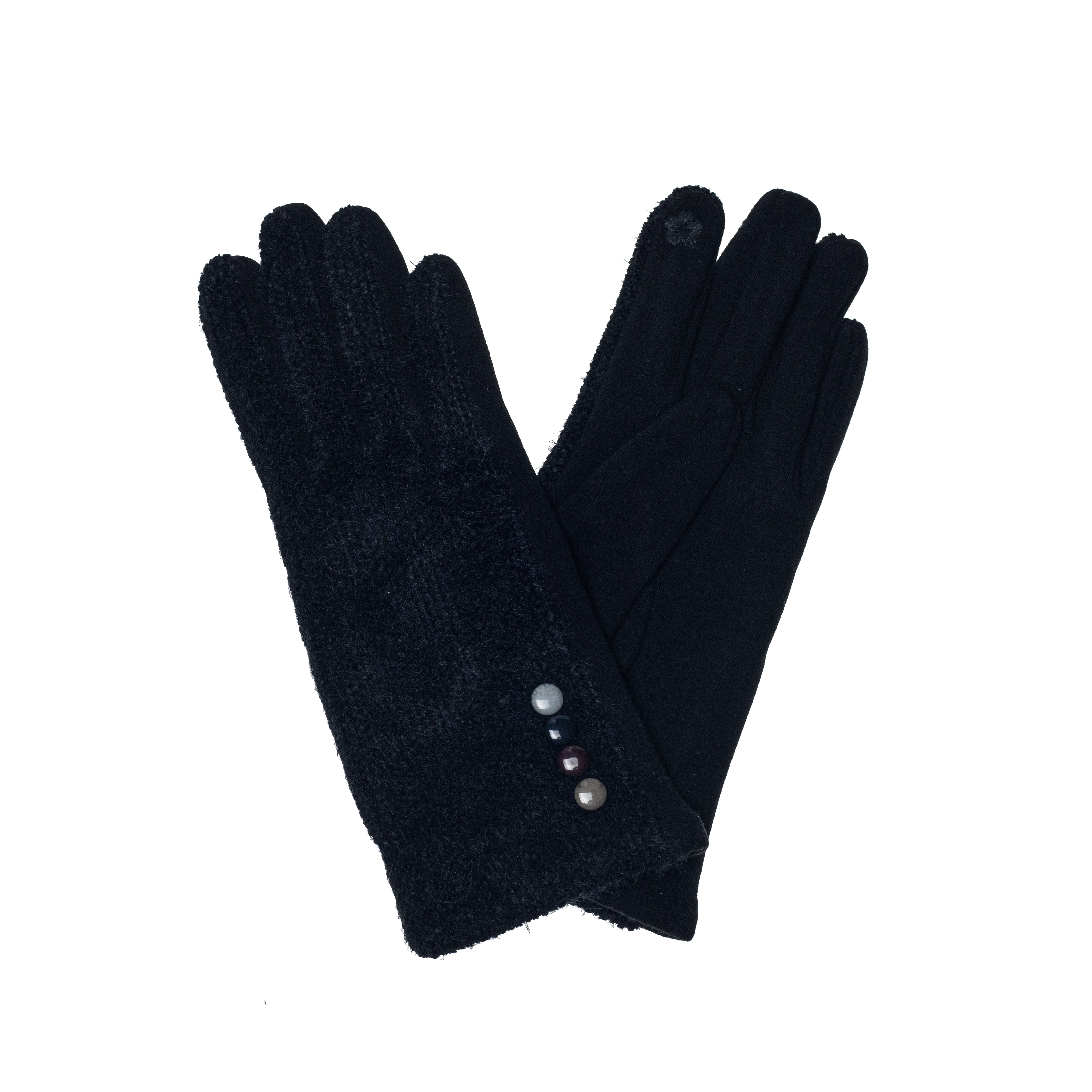 Ελαστικά μαύρα μπουκλέ γάντια με χρωματιστά κουμπάκια και βαμβακερή σύνθεση