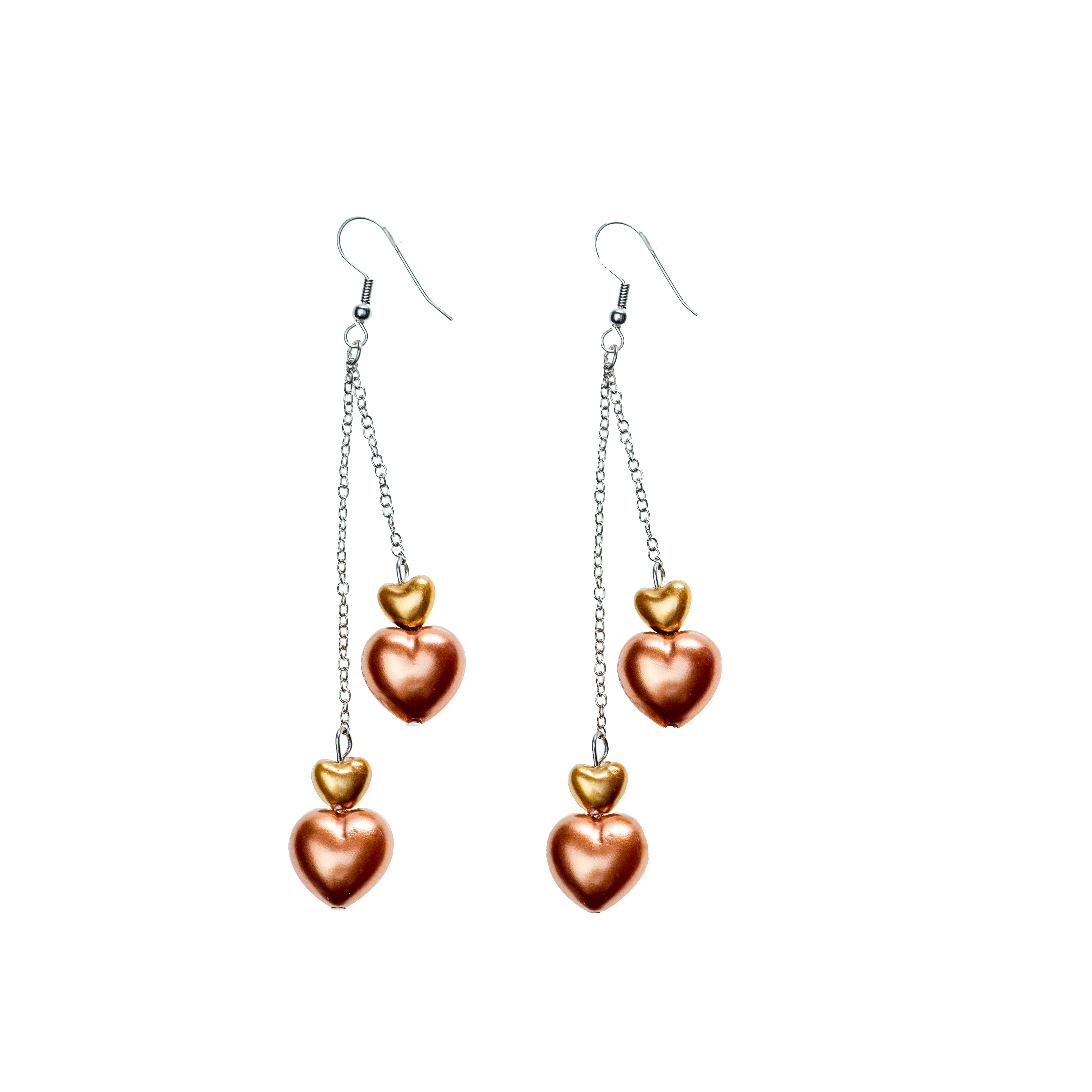 Μακριά ασημί σκουλαρίκια με μπρονζέ κρεμαστές καρδιές