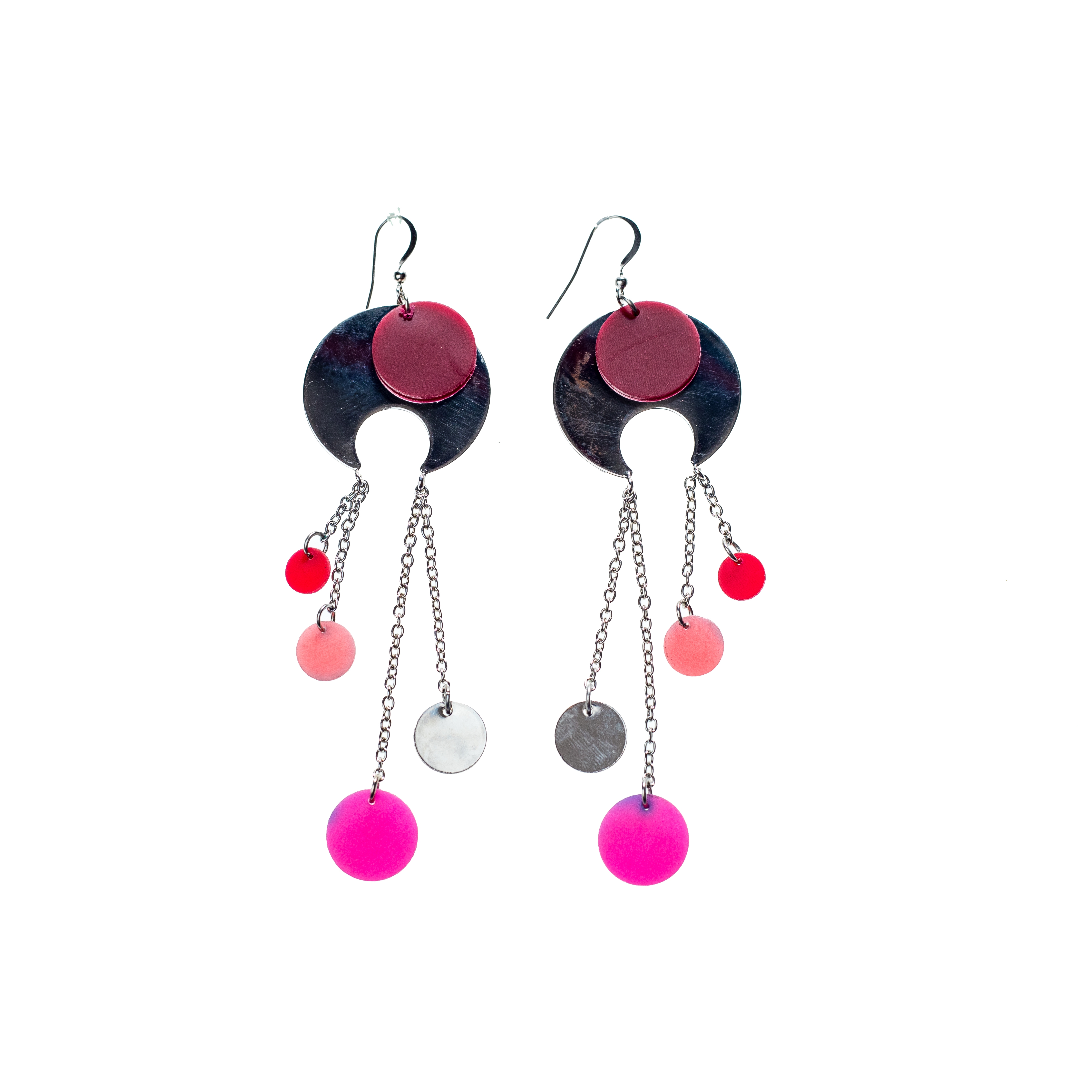 Μακριά ασημί σκουλαρίκια με αλυσίδες και φουξ και ασημί charms