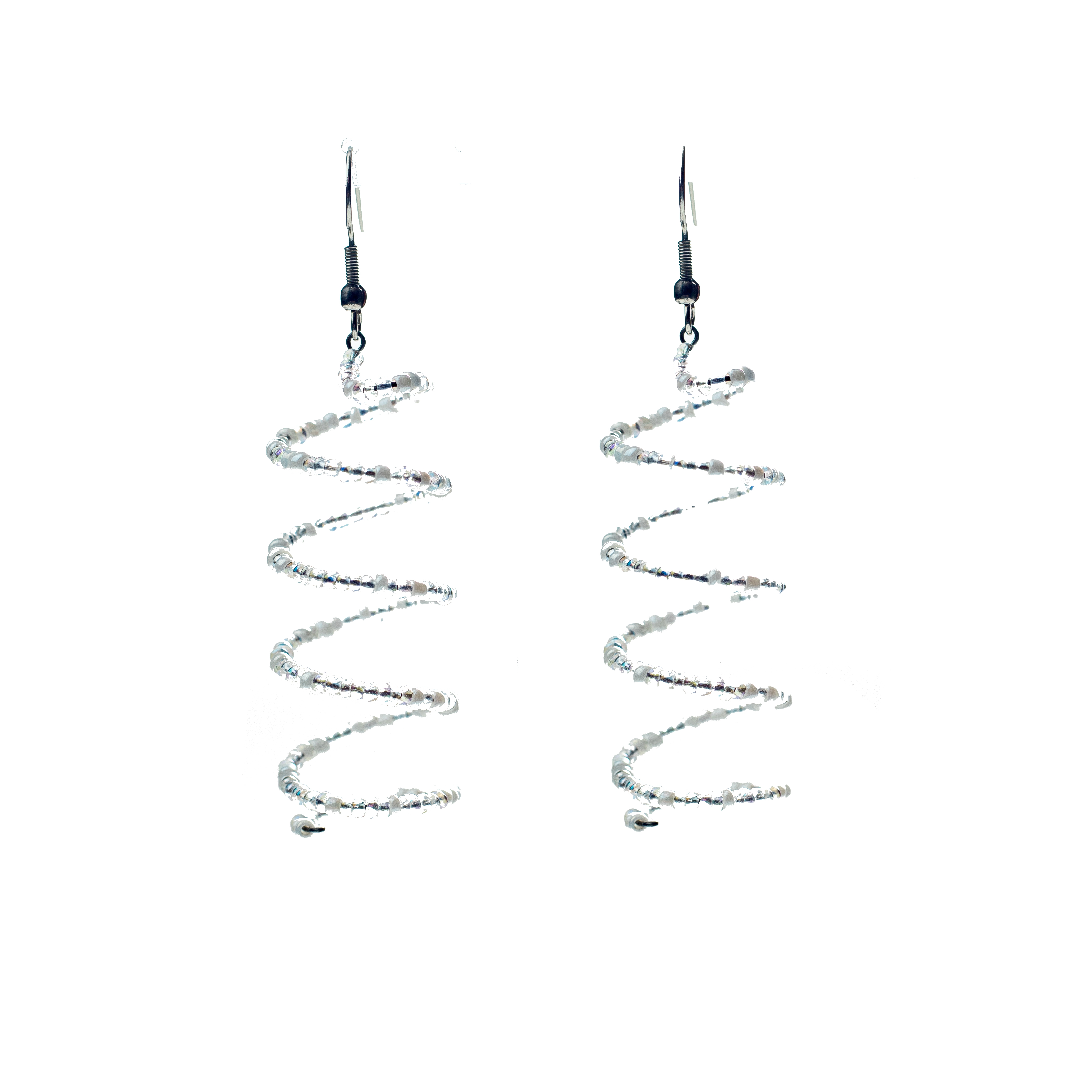 Μακριά σκουλαρίκια με σπιράλ από λευκές και διάφανες χάντρες