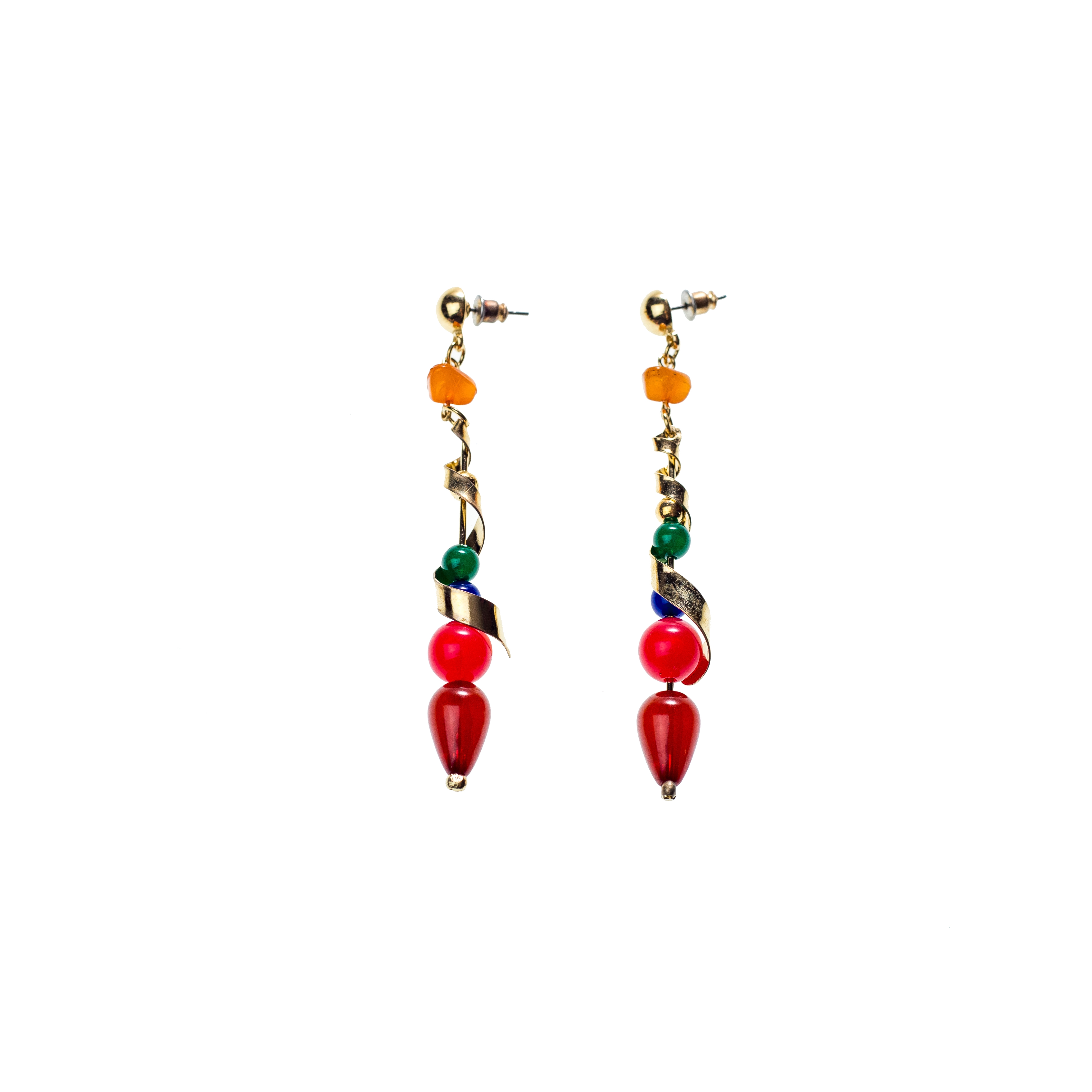 Χρυσά σκουλαρίκια Twirl με χρωματιστές πέτρες