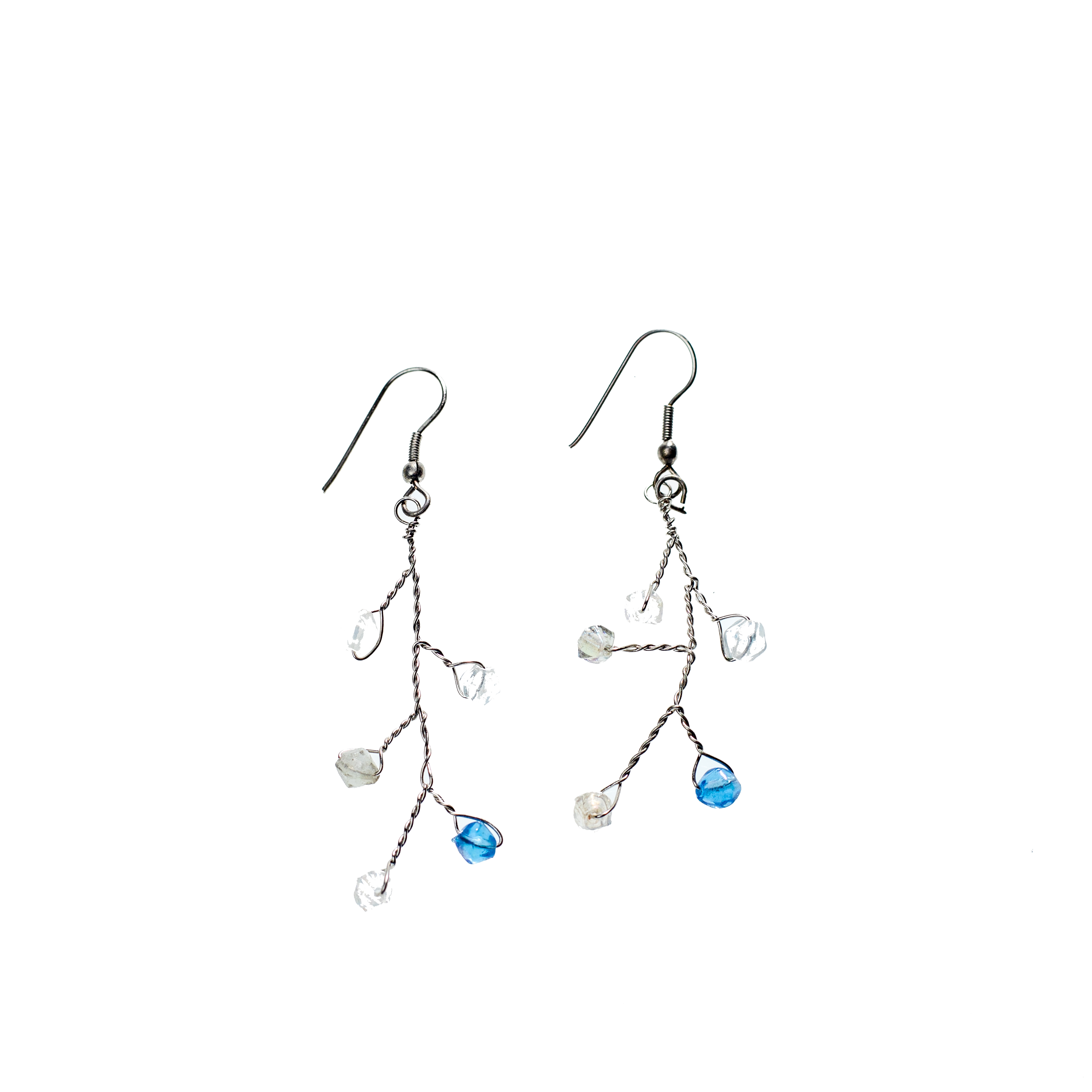 Ασημί σκουλαρίκια με διάφανες και γαλάζιες πέτρες