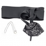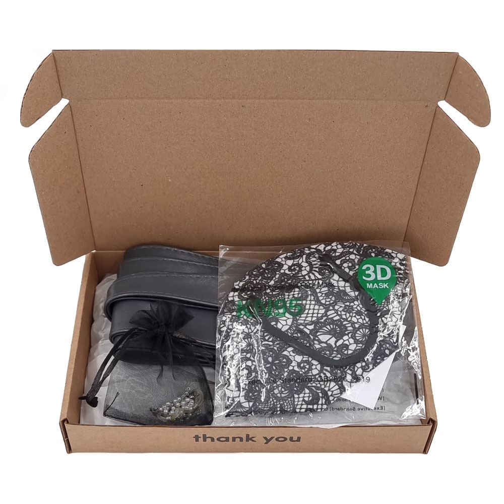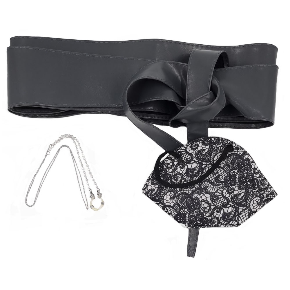 Gift box με γυναικεία γκρι ζώνη one size, μάσκα KN95 lace print και ασημί αλυσίδα γυαλιών και μάσκας
