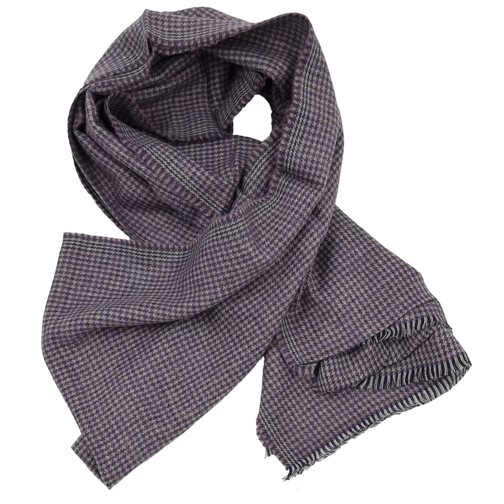 Μωβ και μπεζ Ιταλικό ανδρικό κασκόλ pied de poule από πολύ μαλακό ύφασμα