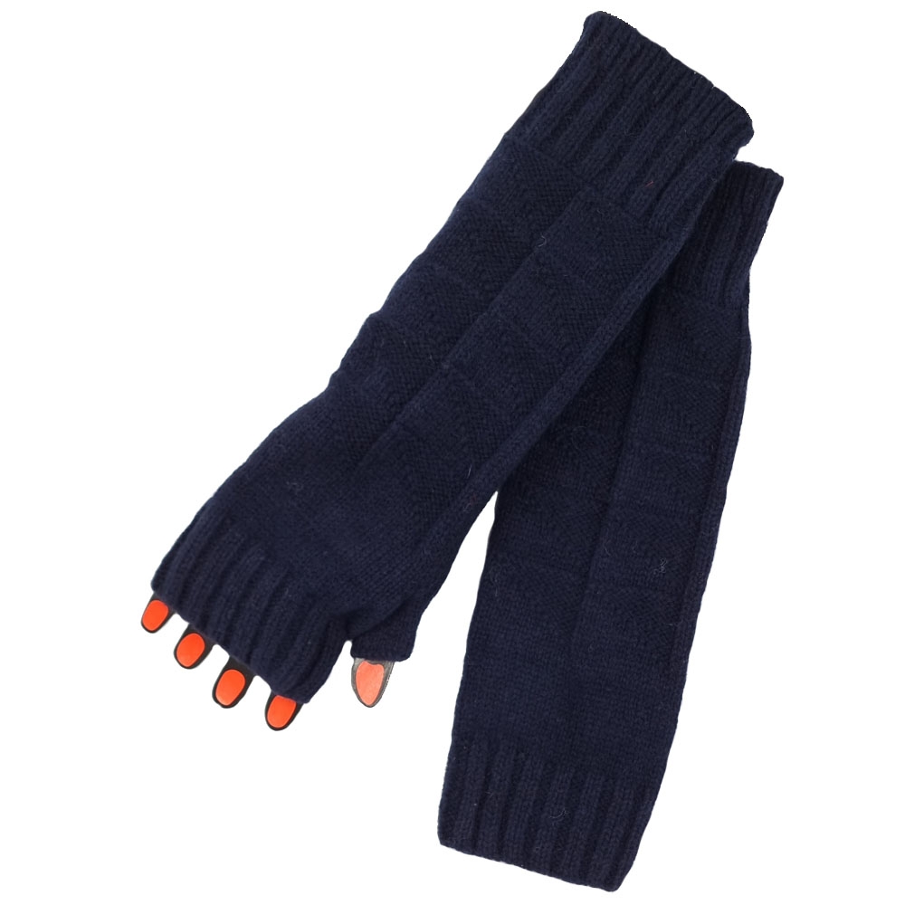Μπλε μακριά πλεκτά γάντια-μανίκια Squares από σύμμεικτο μαλλί