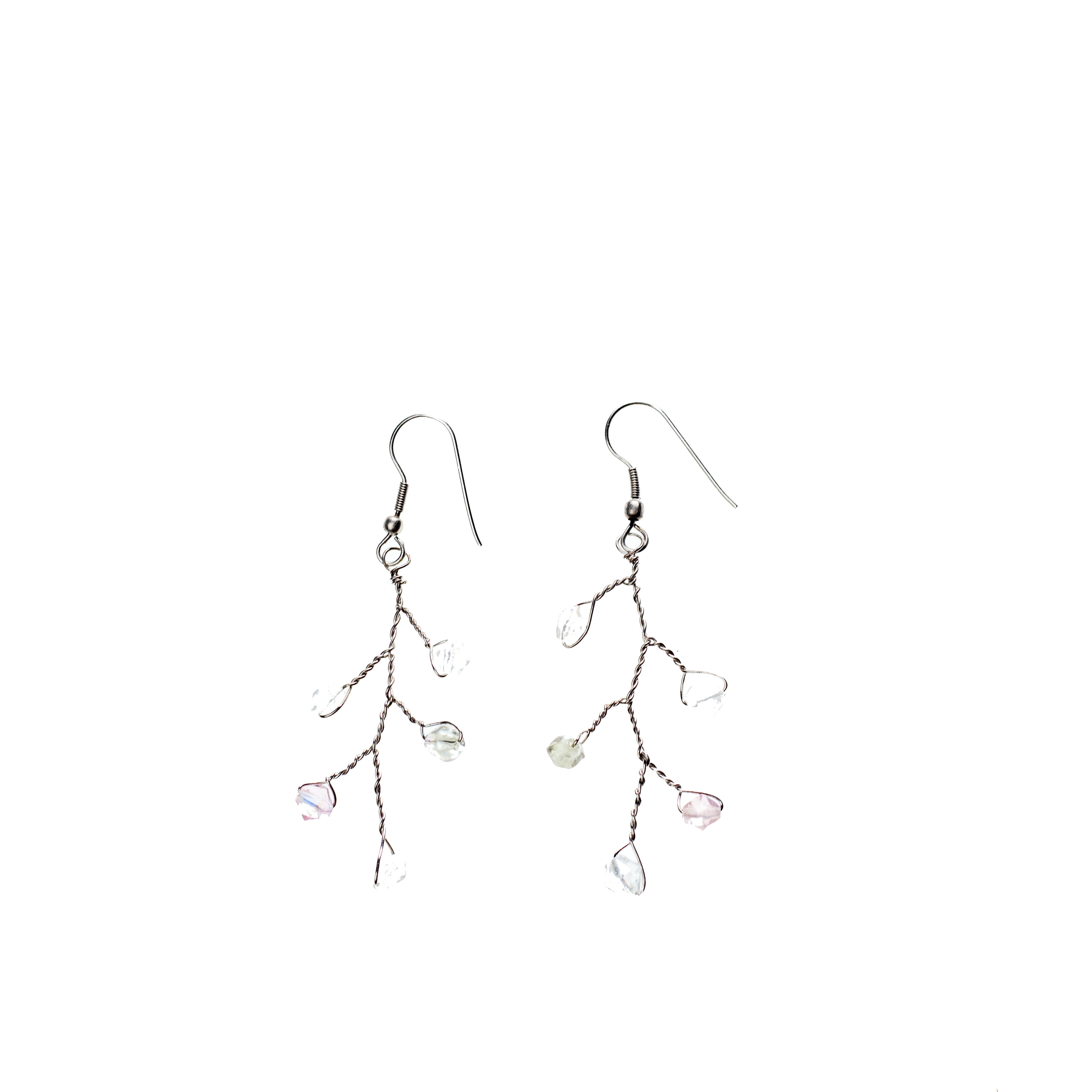 Ασημί σκουλαρίκια με διάφανες ιριδίζουσες πέτρες