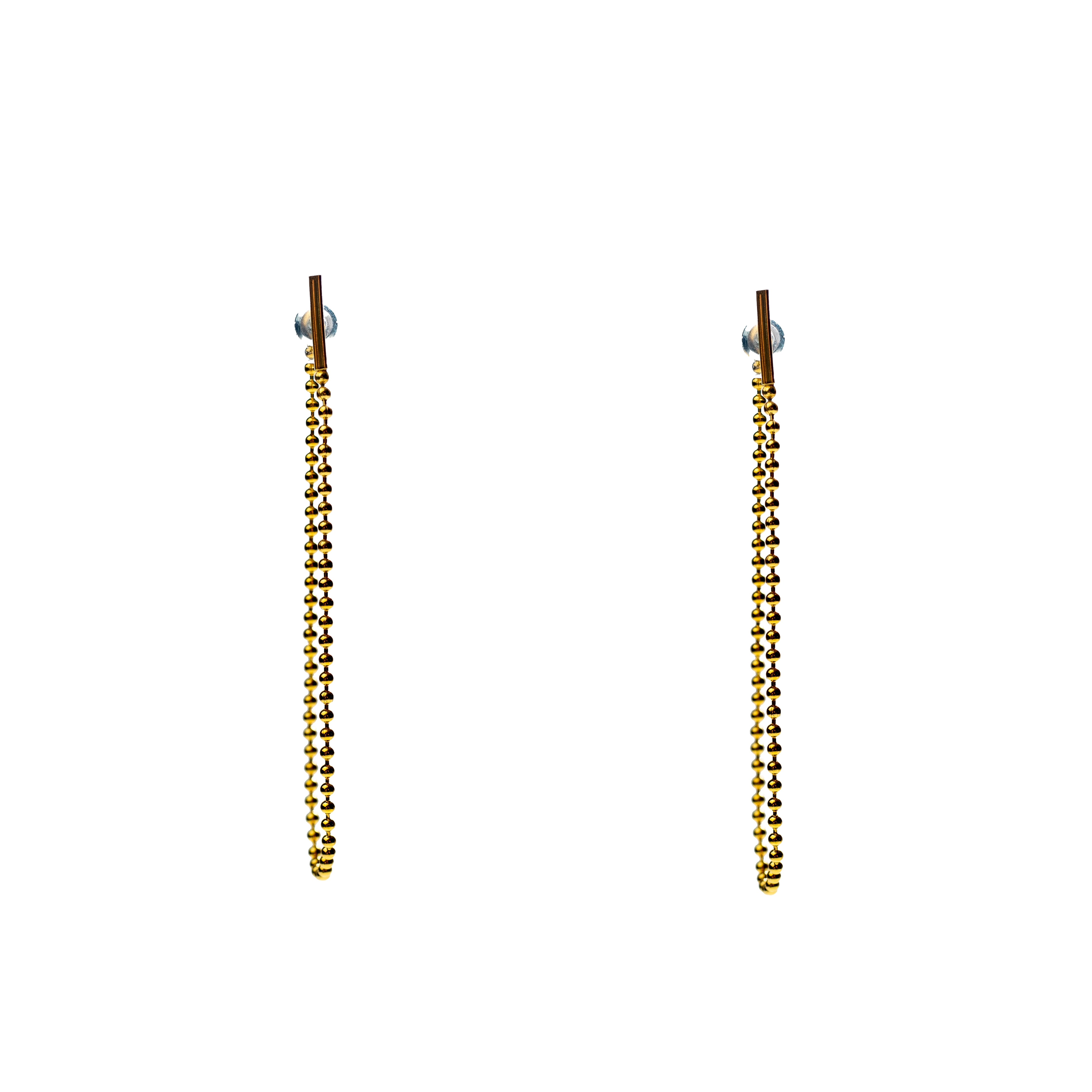 Μακριά χρυσαφί σκουλαρίκια με διπλές αλυσίδες και χρυσαφί ορθογώνιο κούμπωμα