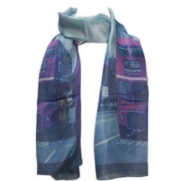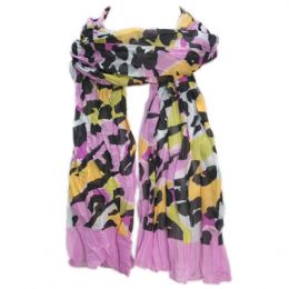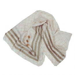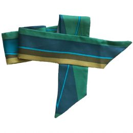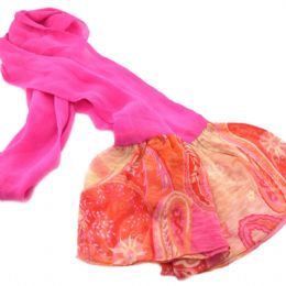 Φαρδύ μπλε φουλάρι με zig zag ρόμβους και ροζ μπορντούρα από σύμμεικτο μετάξι