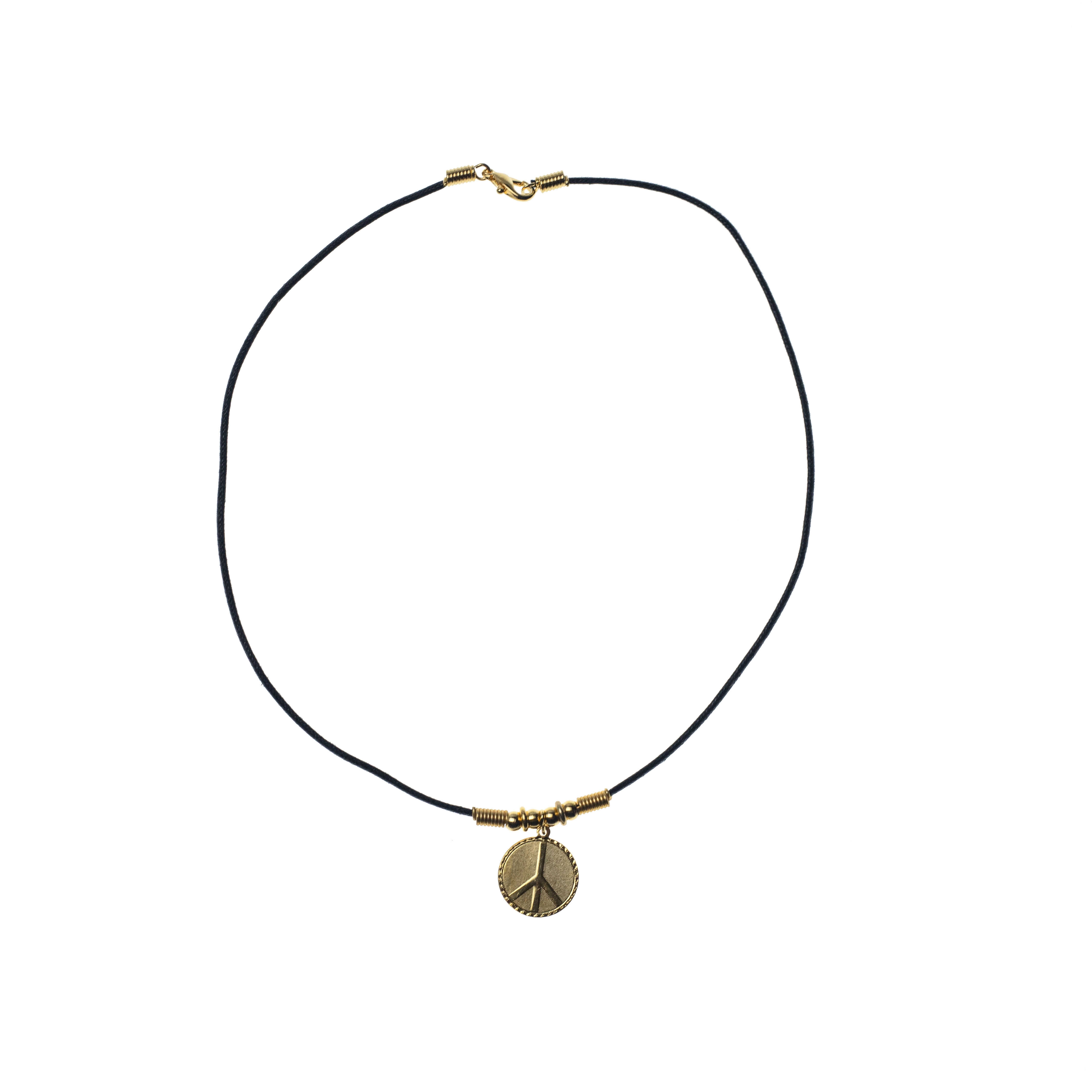 Κολιέ με δερμάτινο κορδόνι και ματ χρυσαφί κρεμαστό Peace