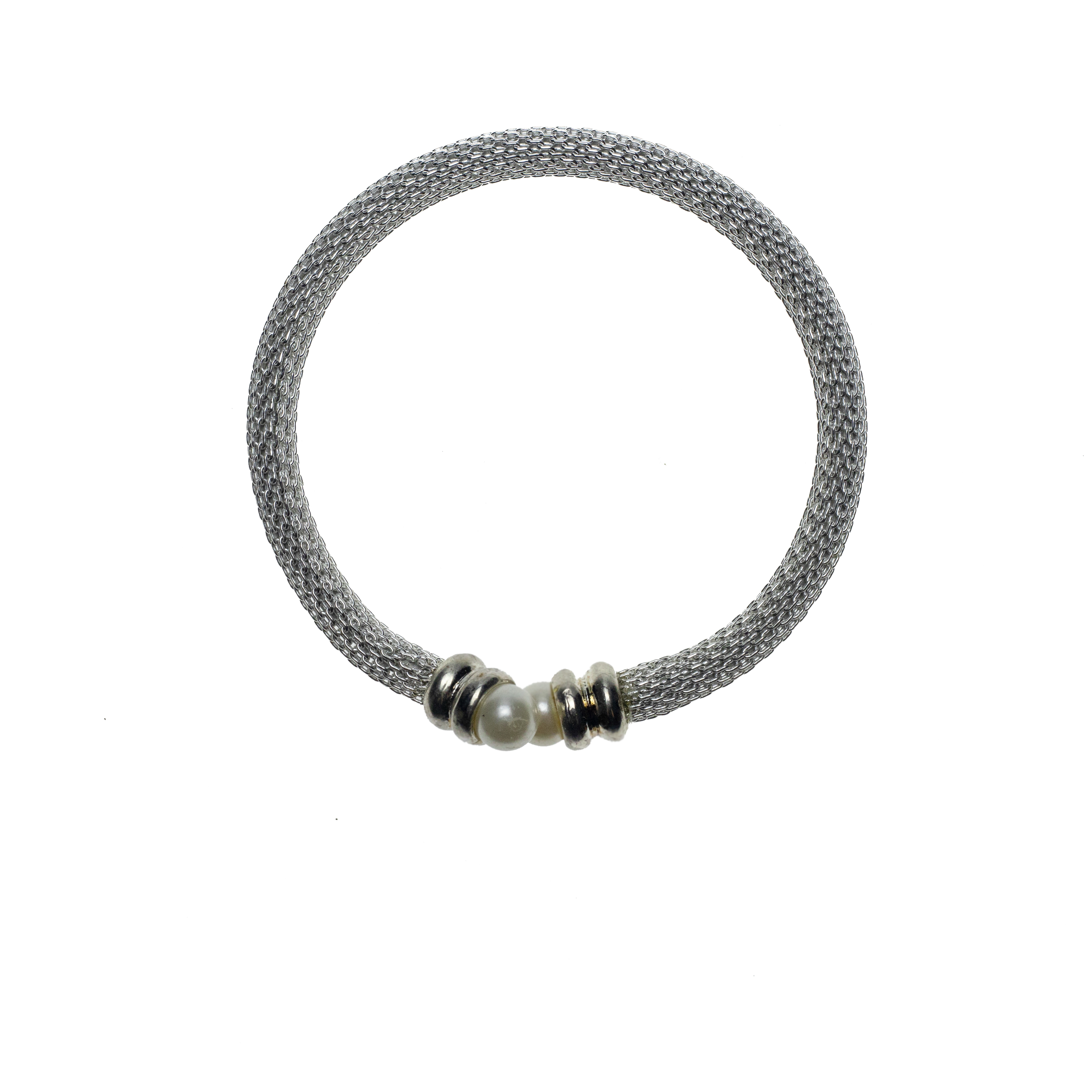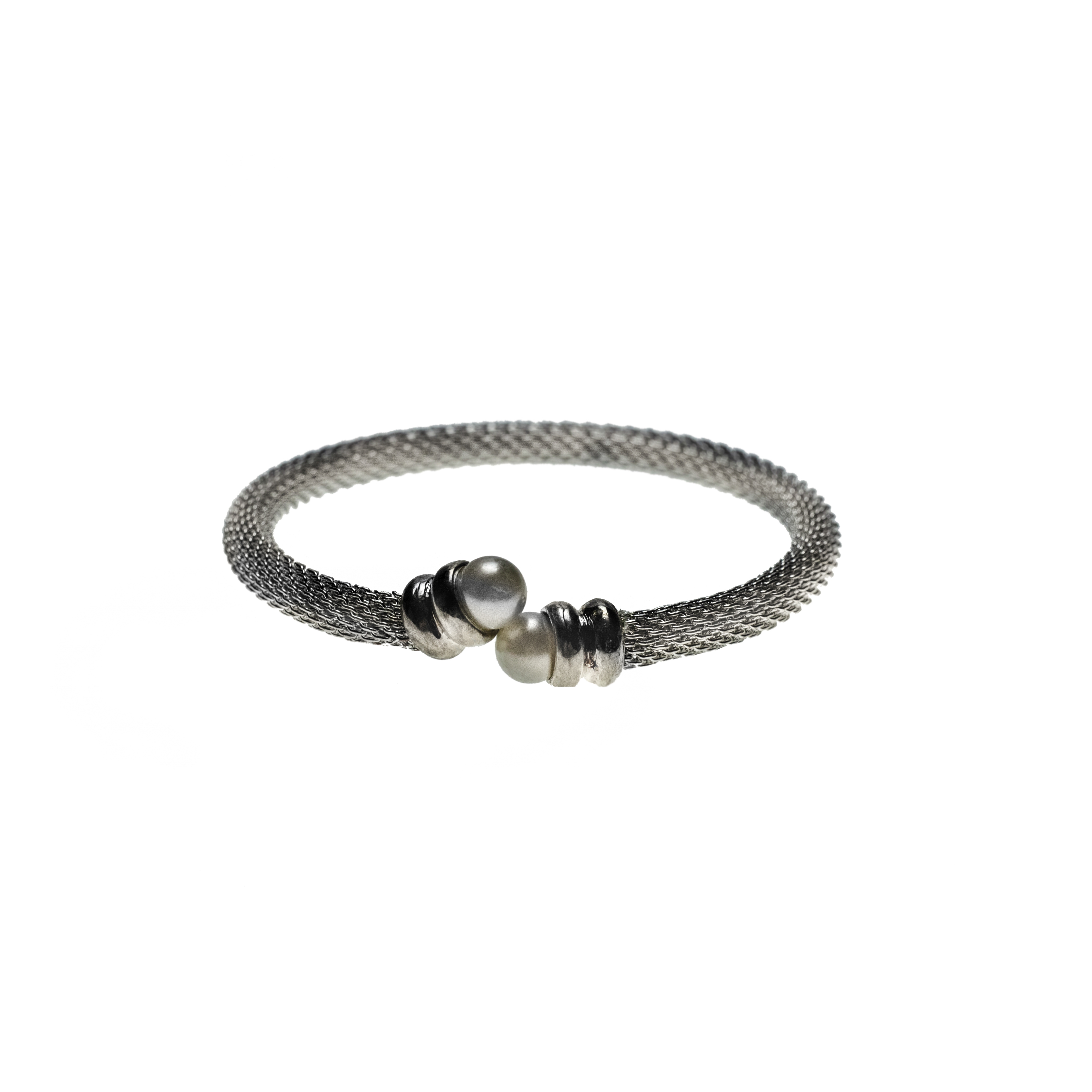Ασημί βραχιόλι σπιράλ με λευκές πέρλες