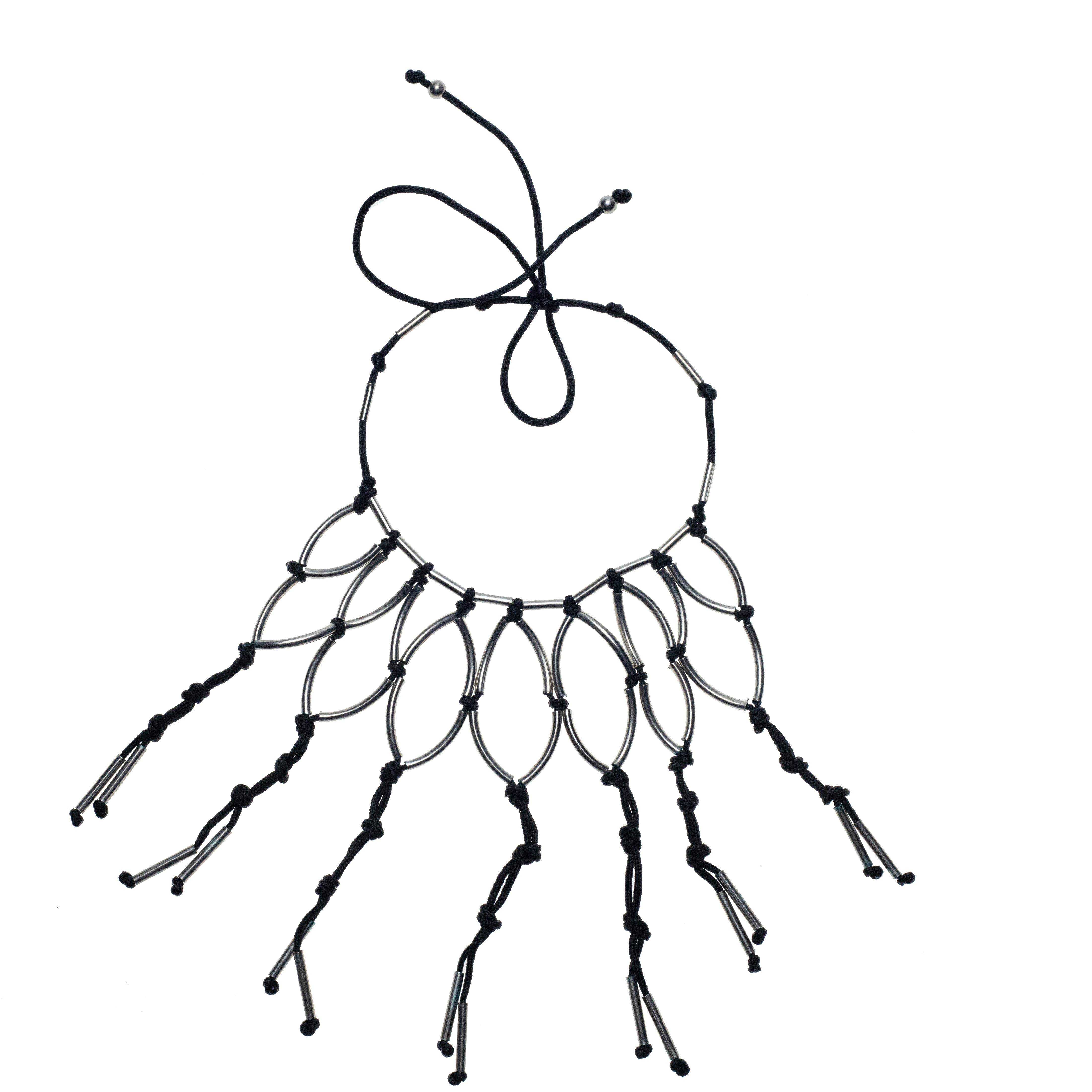 Τσόκερ με κρεμαστά μαύρα κορδόνια και ασημί λεπτομέρειες