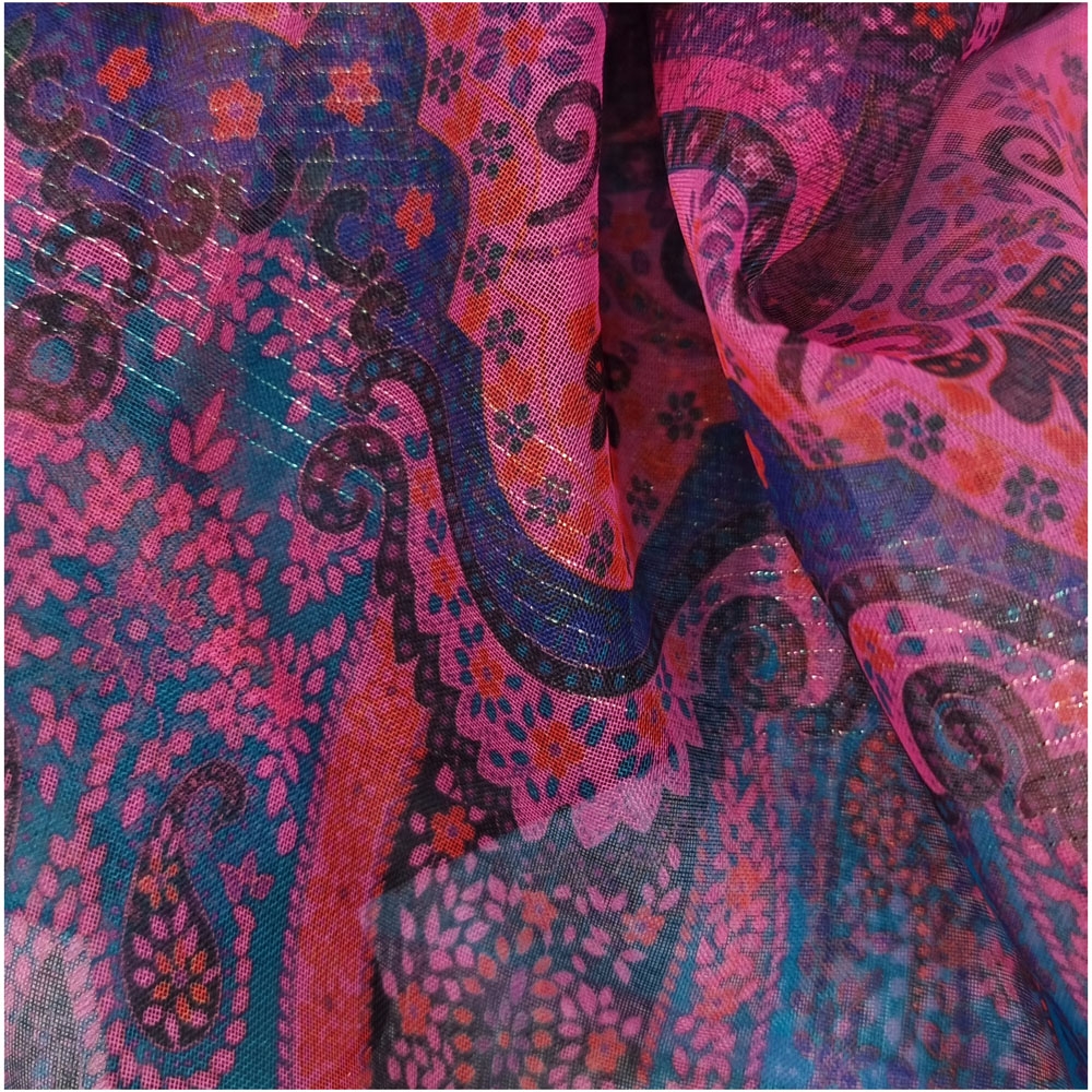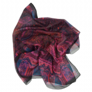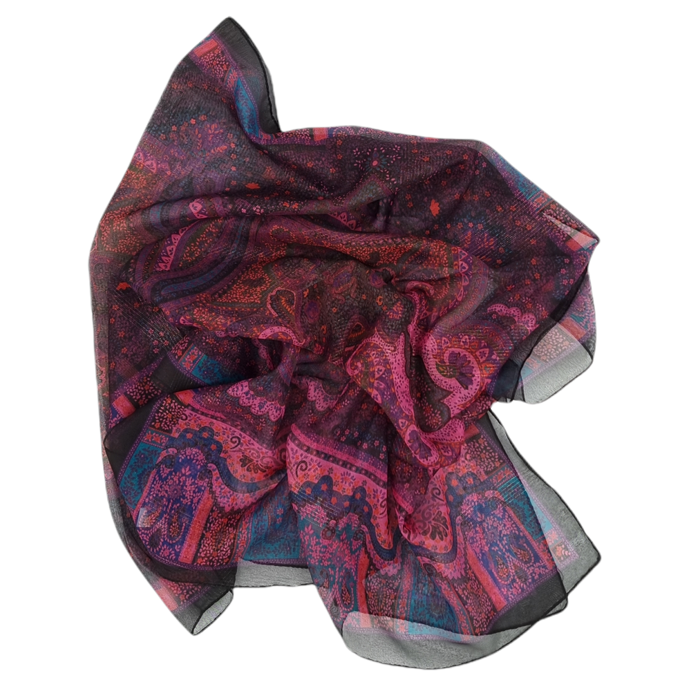 Μαύρο ιταλικό φουλάρι με φουξ και πετρόλ praisley prints και χρυσαφί lurex ρίγες