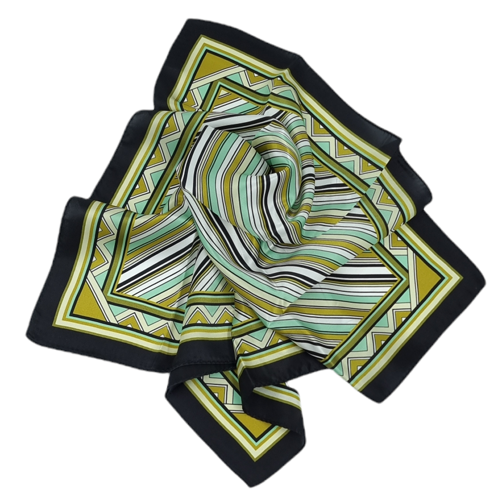 Ριγέ πράσινο μεταξωτό μαντήλι με μαύρη μπορντούρα