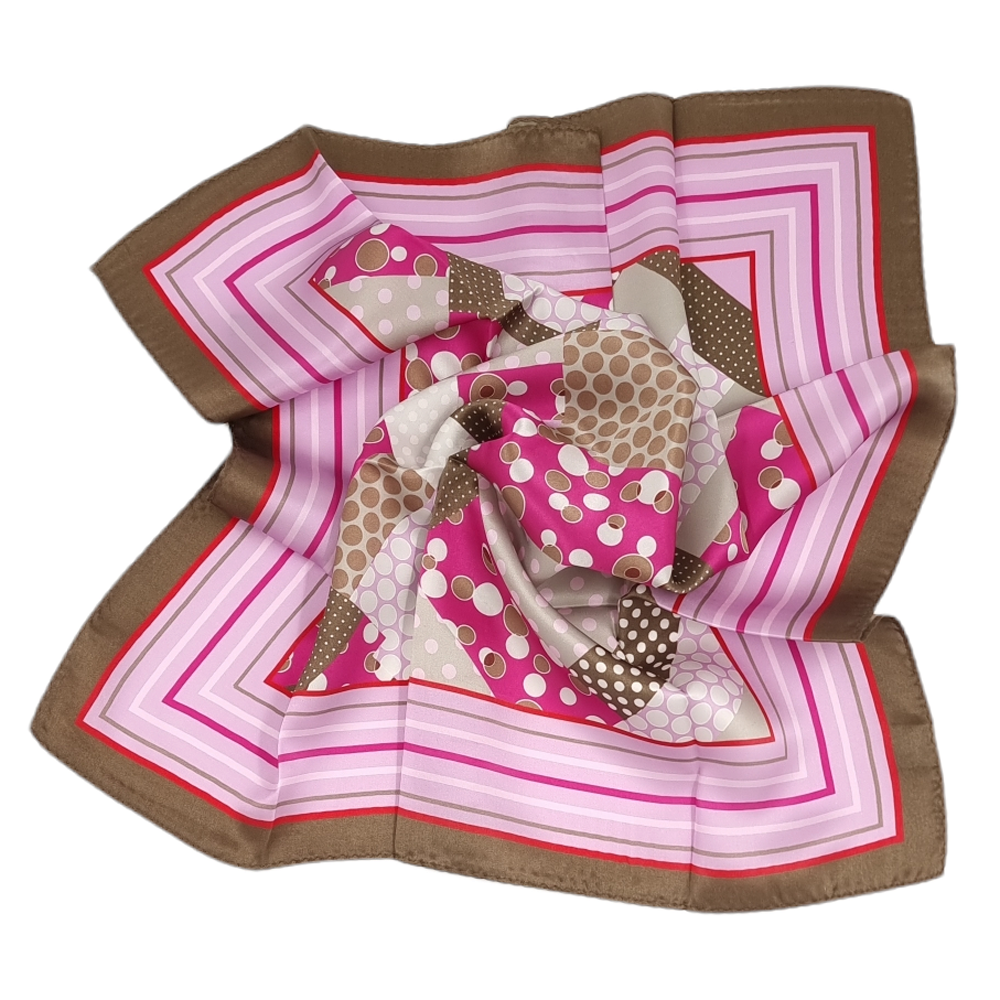 Λιλά και φουξ μεταξωτό μαντήλι με πουά print και ρίγες