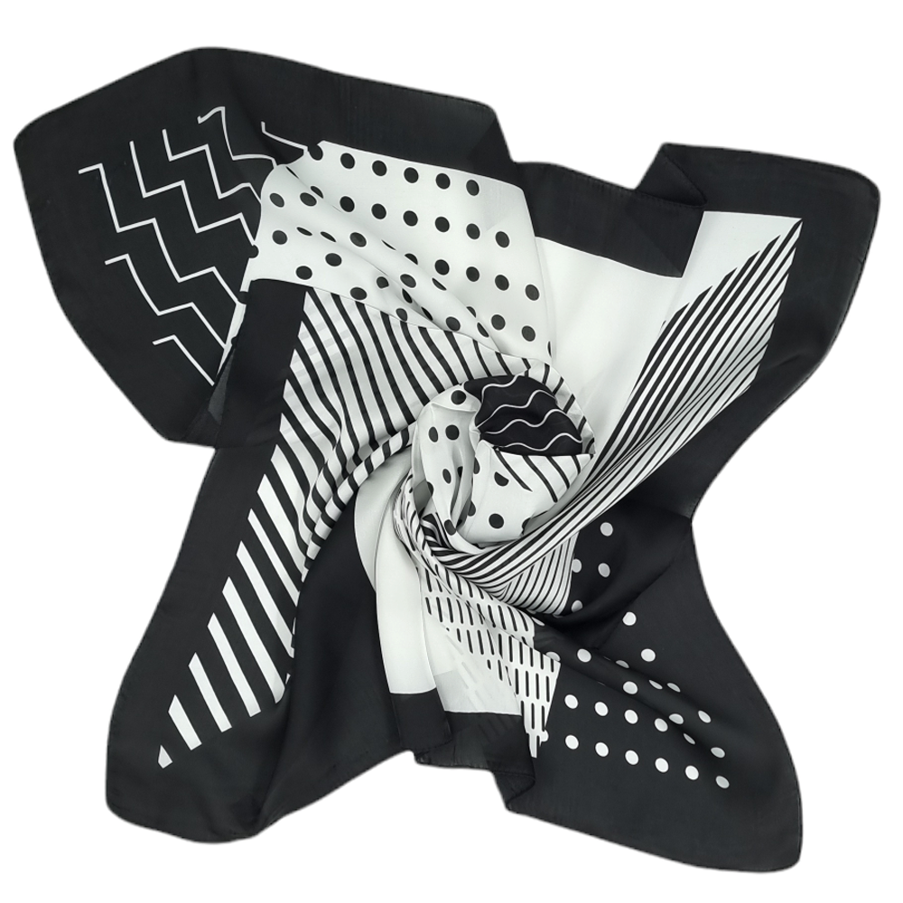 Ασπρόμαυρη μαντήλα με ρίγες, πουά και zig zag print με αίσθηση μεταξιού
