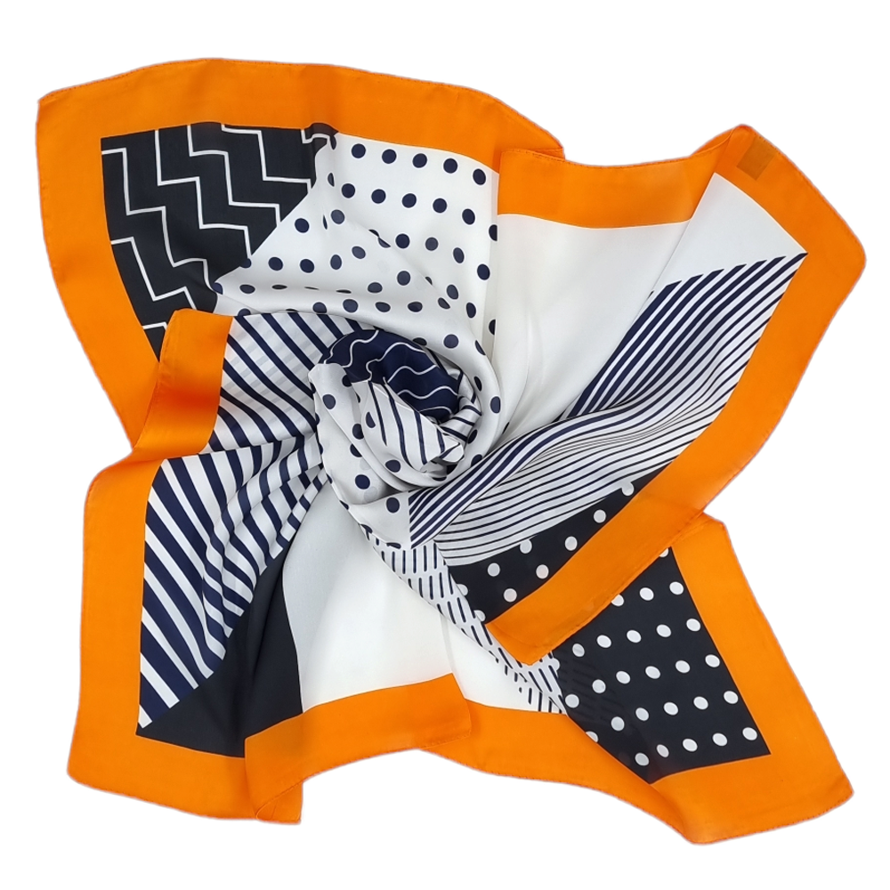 Μπλε, λευκή και μαύρη μαντήλα με γραμμικά σχέδια και πορτοκαλί μπορντούρα με αίσθηση μεταξιού