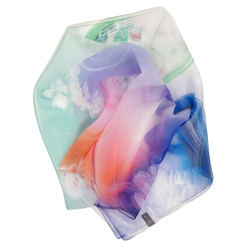 Λιλά, βεραμάν, ροζ και μπλε ρουαγιάλ ιταλικό φουλάρι με πεταλούδες και λουλούδια