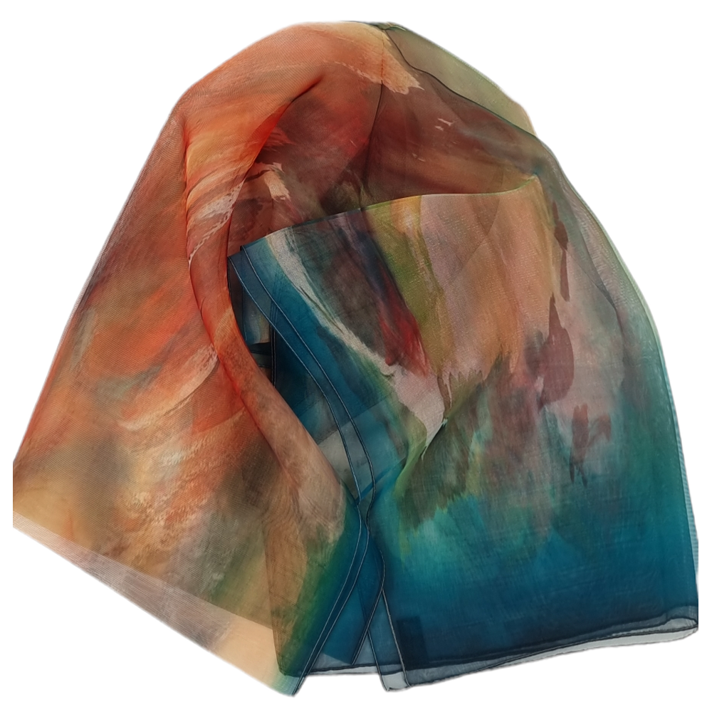 Πετρόλ, ταμπά και πράσινο ιταλικό φουλάρι brush effect