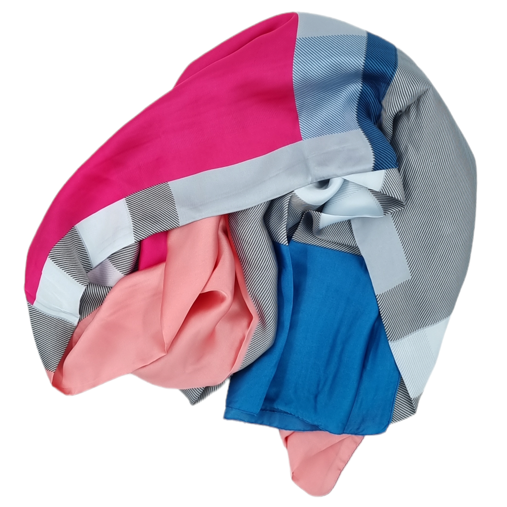 Γκρι, ροζ, φούξια και sky blue καρό εσάρπα από σύμμεικτο μετάξι