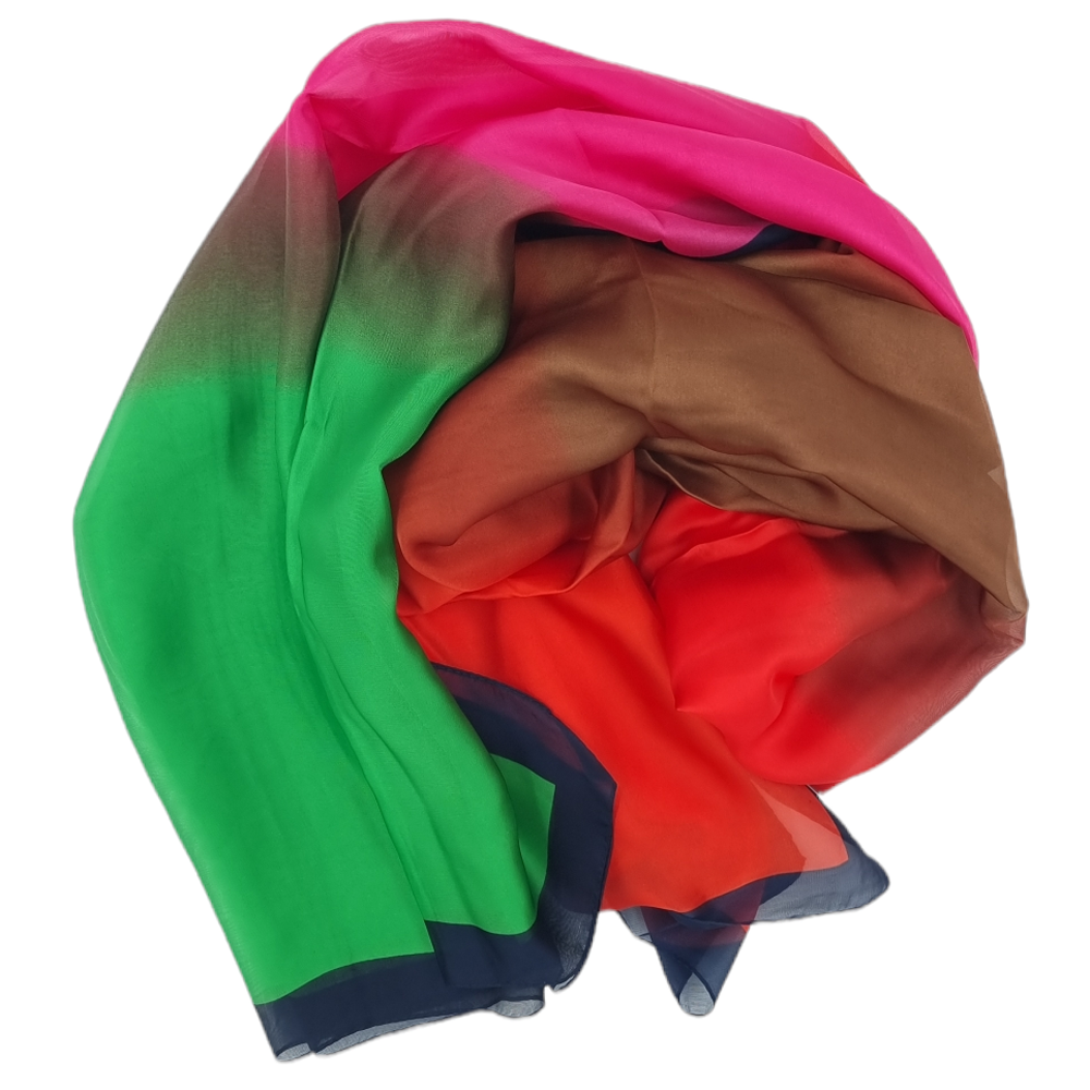 Κόκκινη, σοκολατί, φούξια και πράσινη εσάρπα με μπλε μπορντούρα από σύμμεικτο μετάξι