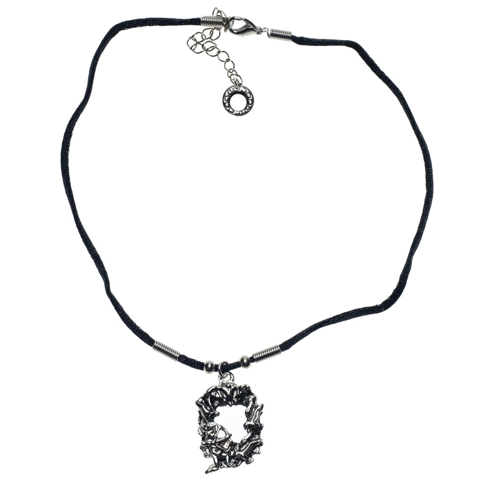 Κολιέ με μαύρο κορδόνι και ασημί σκαλιστό charm με τοξοβόλο και καθρέφτη