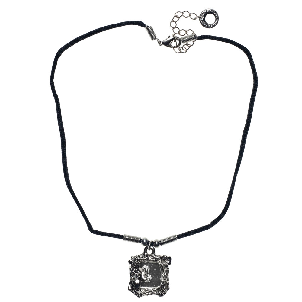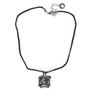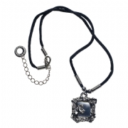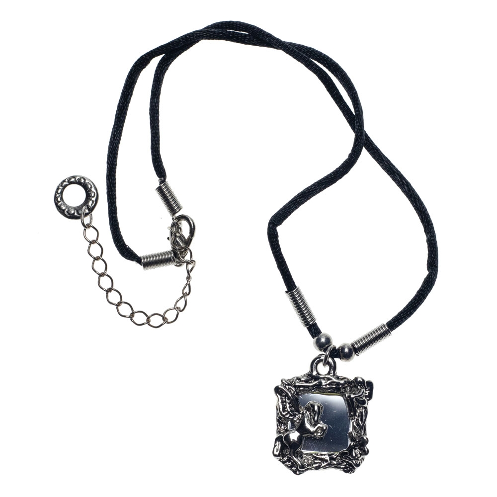 Κολιέ με μαύρο κορδόνι και ασημί τετράγωνο σκαλιστό charm με Πήγασο και καθρέφτη
