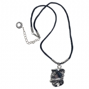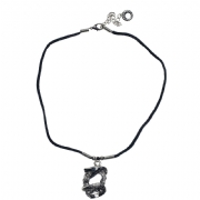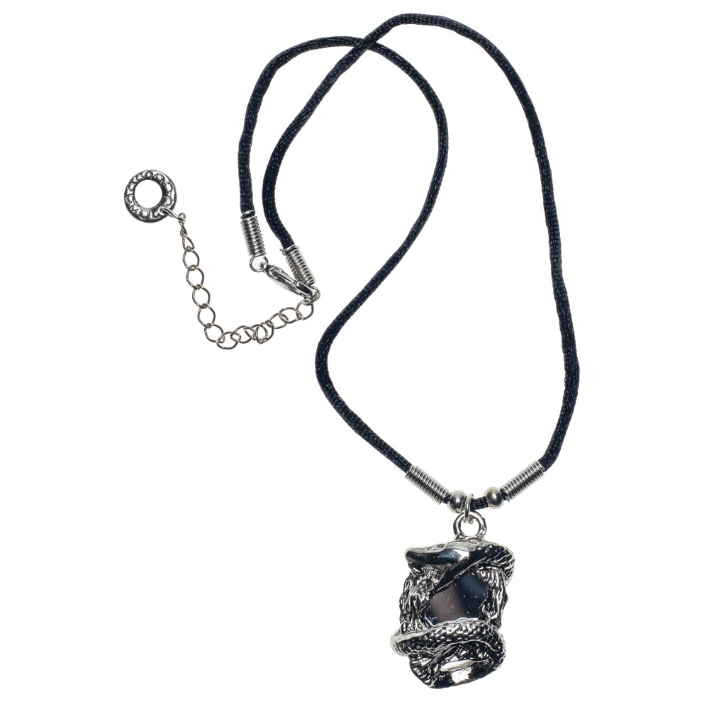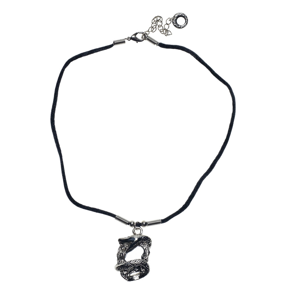 Κολιέ με μαύρο κορδόνι και ασημί σκαλιστό τετράγωνο charm με φίδι και καθρέφτη