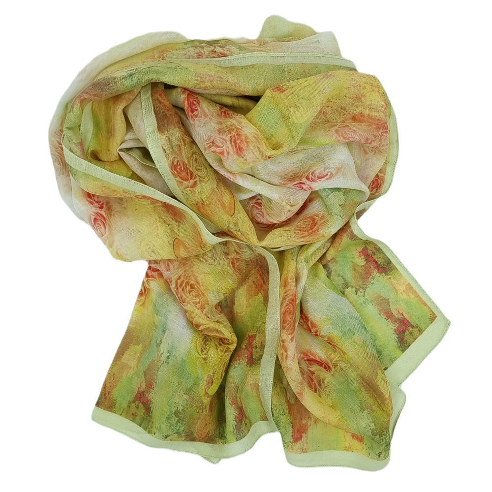 Κίτρινο και lime ιταλικό φουλάρι με κόκκινα τριαντάφυλλα από πολύ μαλακό ύφασμα