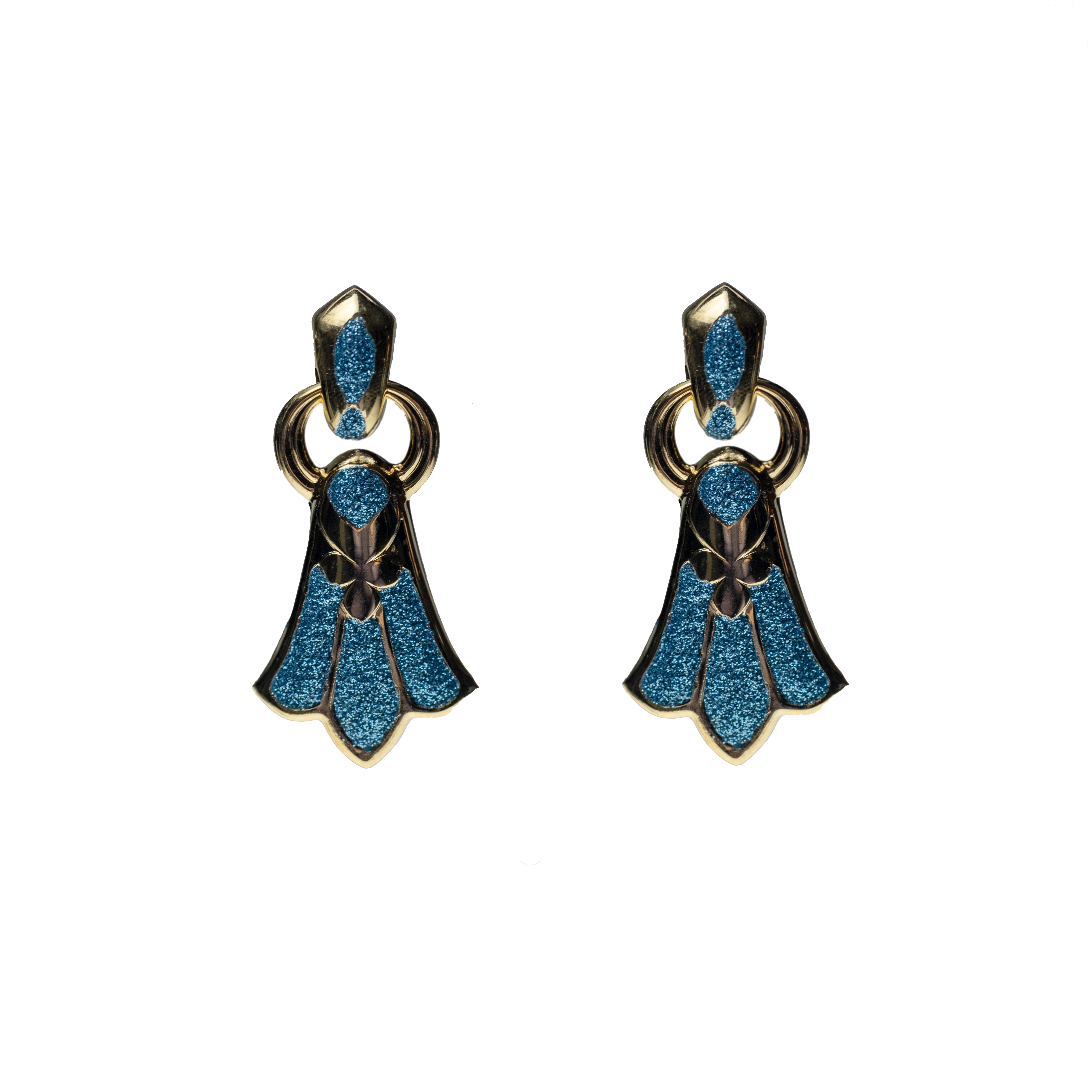 Γυαλιστερά χρυσαφί vintage σκουλαρίκια με τιρκουάζ glossy σχέδιο
