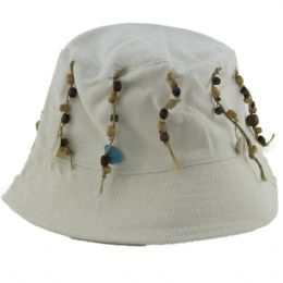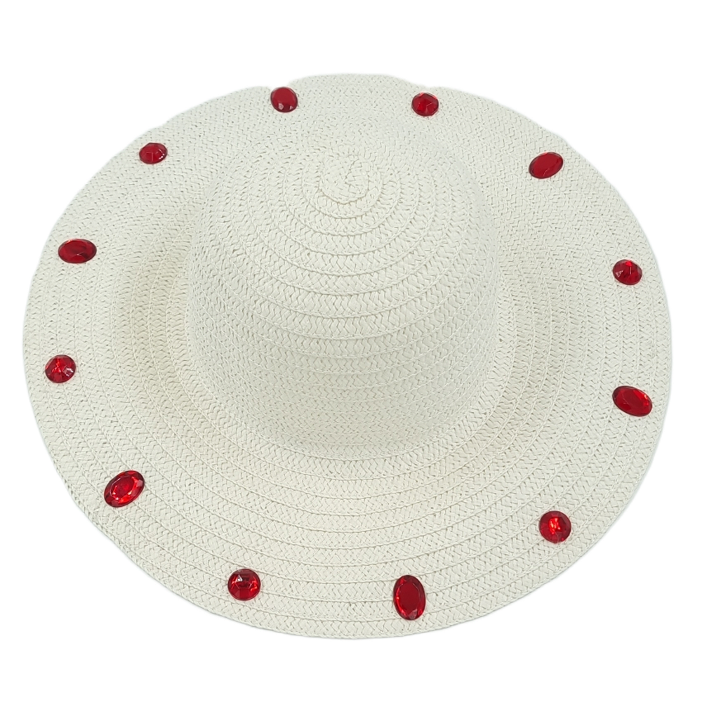 Λευκό ψάθινο καπέλο με κόκκινες πέτρες