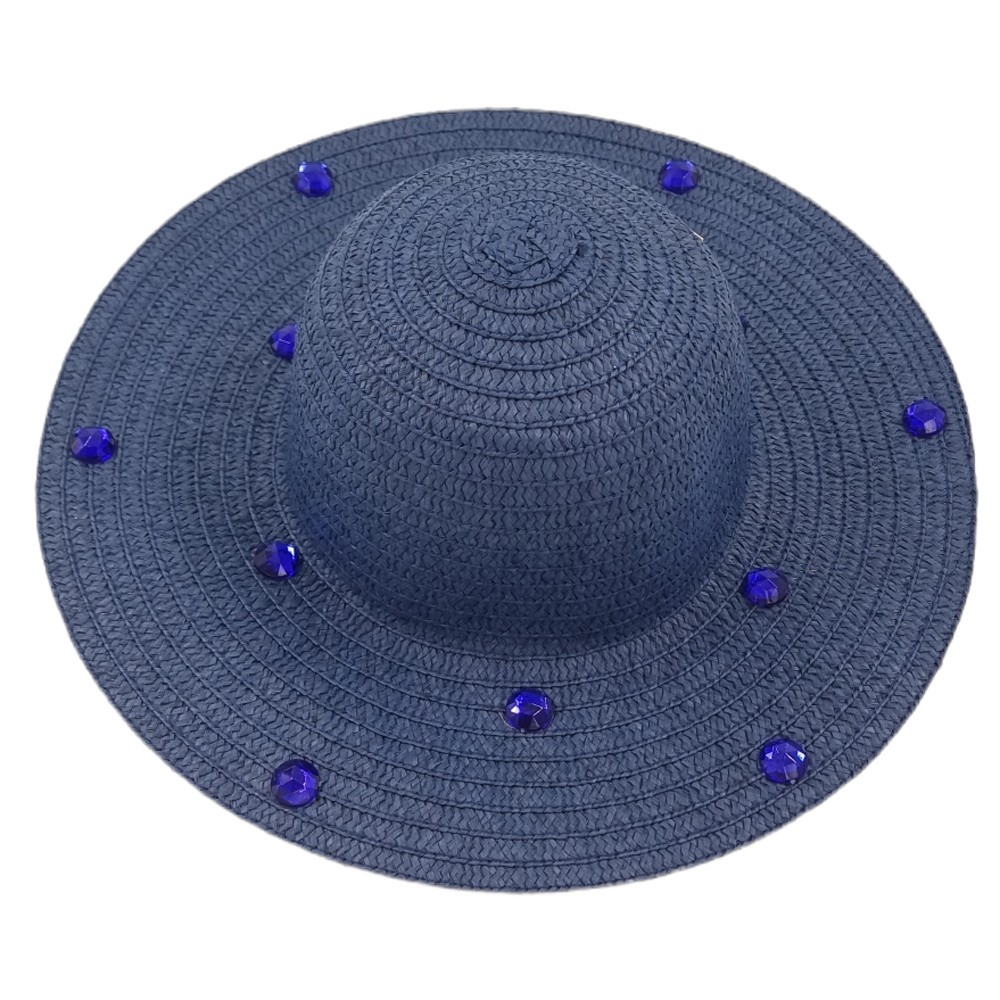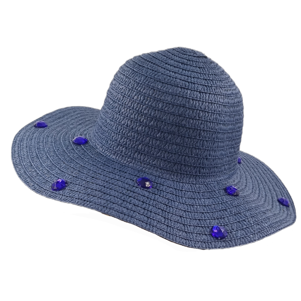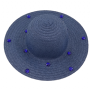 Μπλε ψάθινο καπέλο με royal blue πέτρες