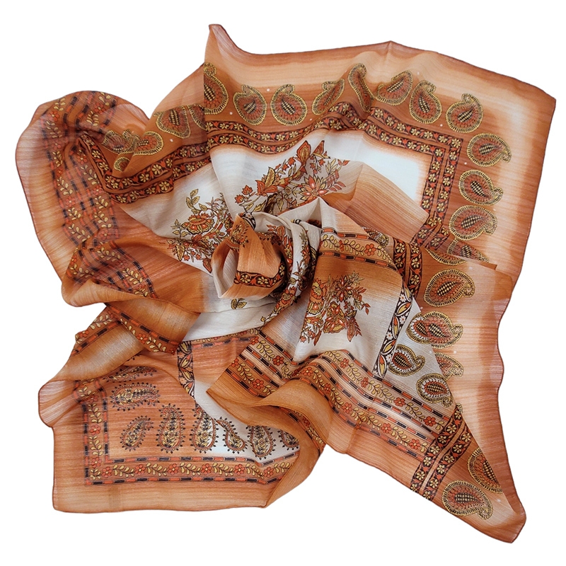 Ταμπά και εκρού Ιταλική τετράγωνη μαντήλα με λαχούρ πορτοκαλί σχέδια