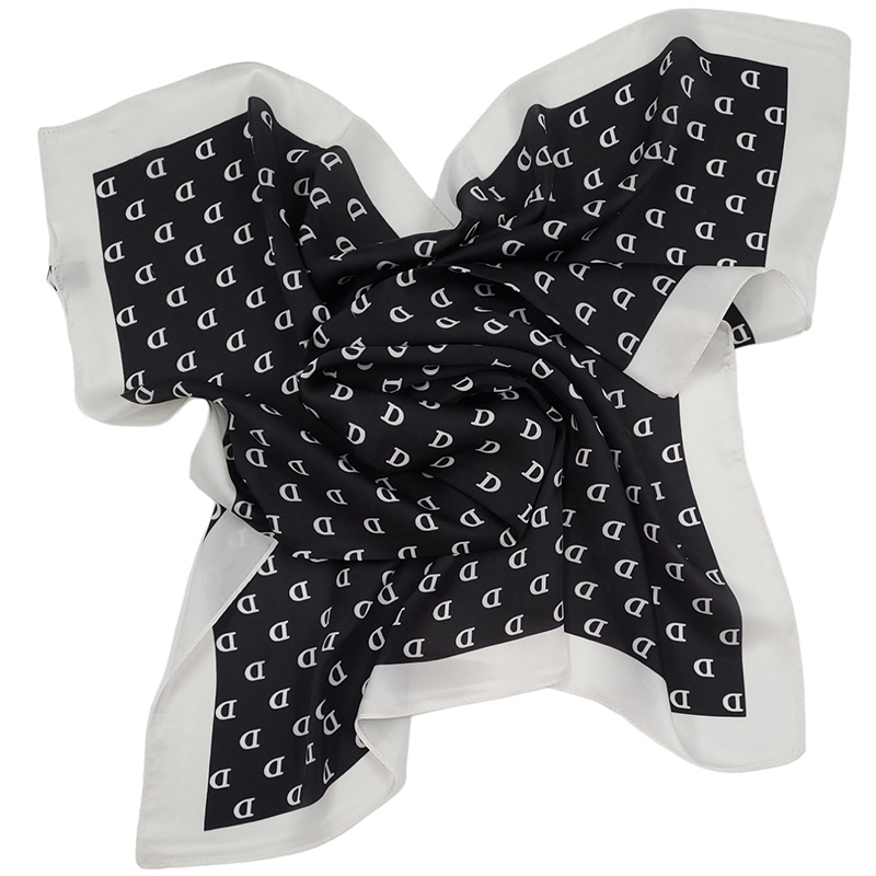 Μαύρη τετράγωνη μαντήλα D shaped με λευκή μπορντούρα από σύμμεικτο μετάξι